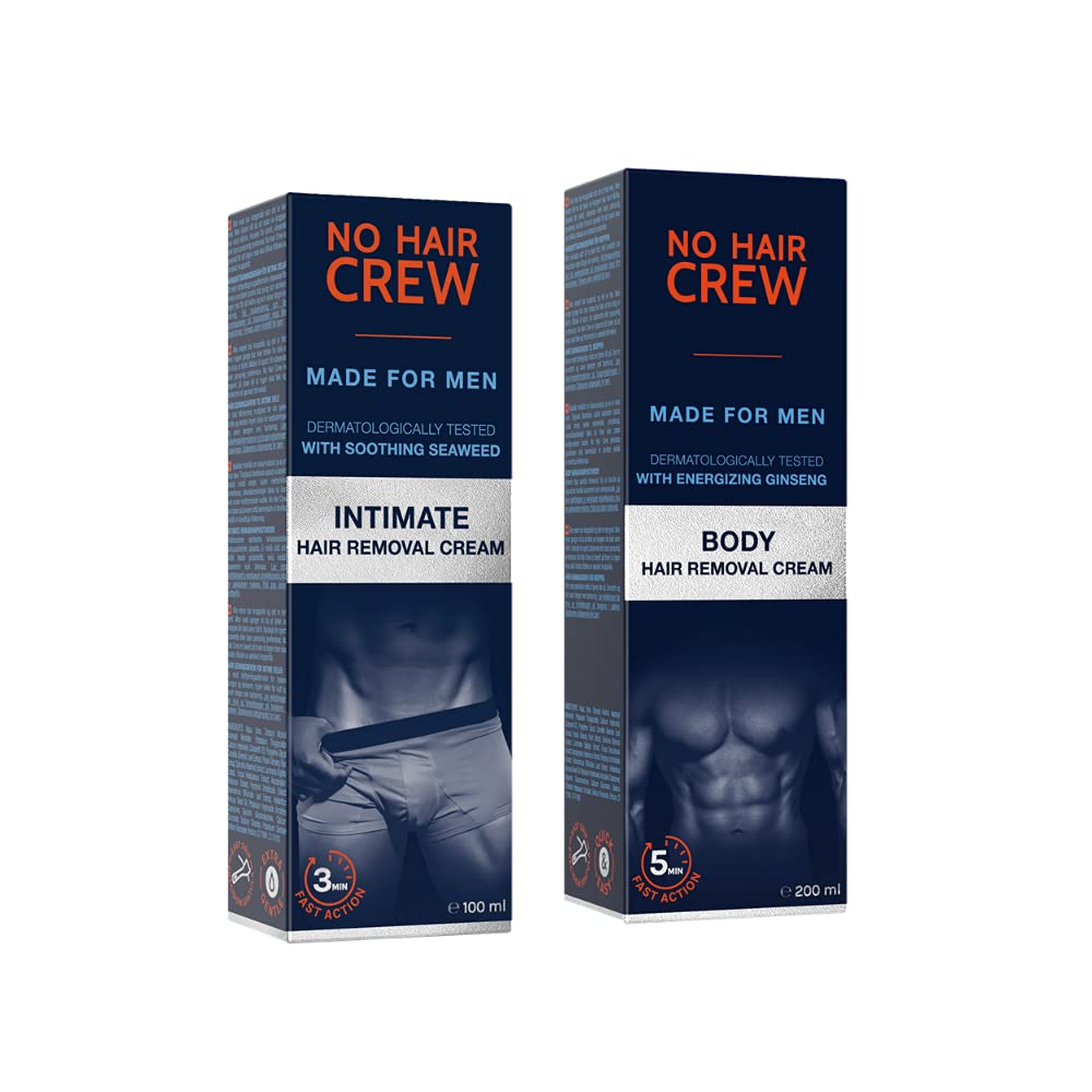 No Hair Crew | Intimate & Body Male Hair Removal Cream Bundle | Painless, Flawless, Soothing Depilatory for Manscaping Unwanted Coarse Male Hair