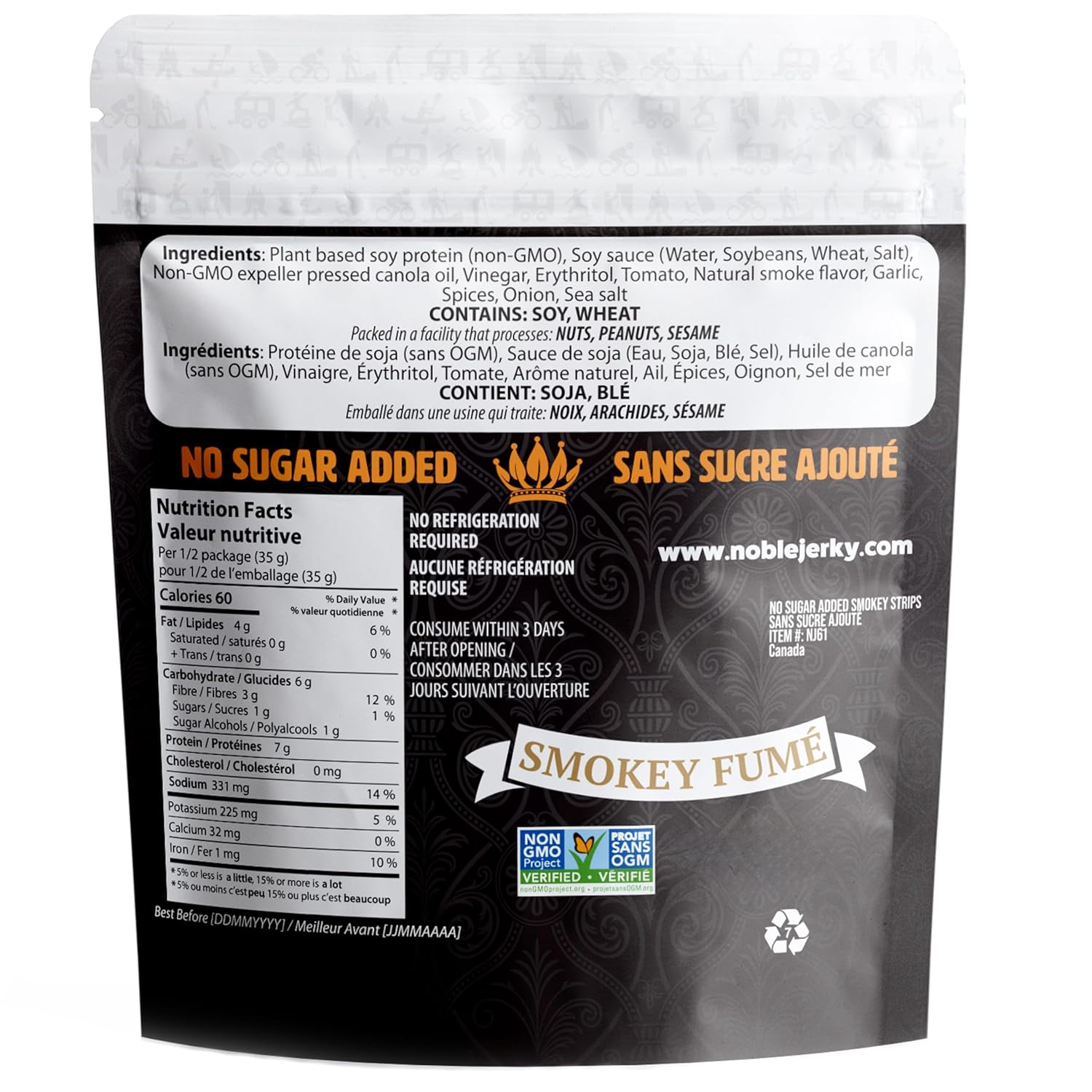 Noble Jerky - Vegan Keto Smokey Strips, High-Protein Vegetarian Jerky, Plant-Based Snack, 2.47 Oz (3 Pack)