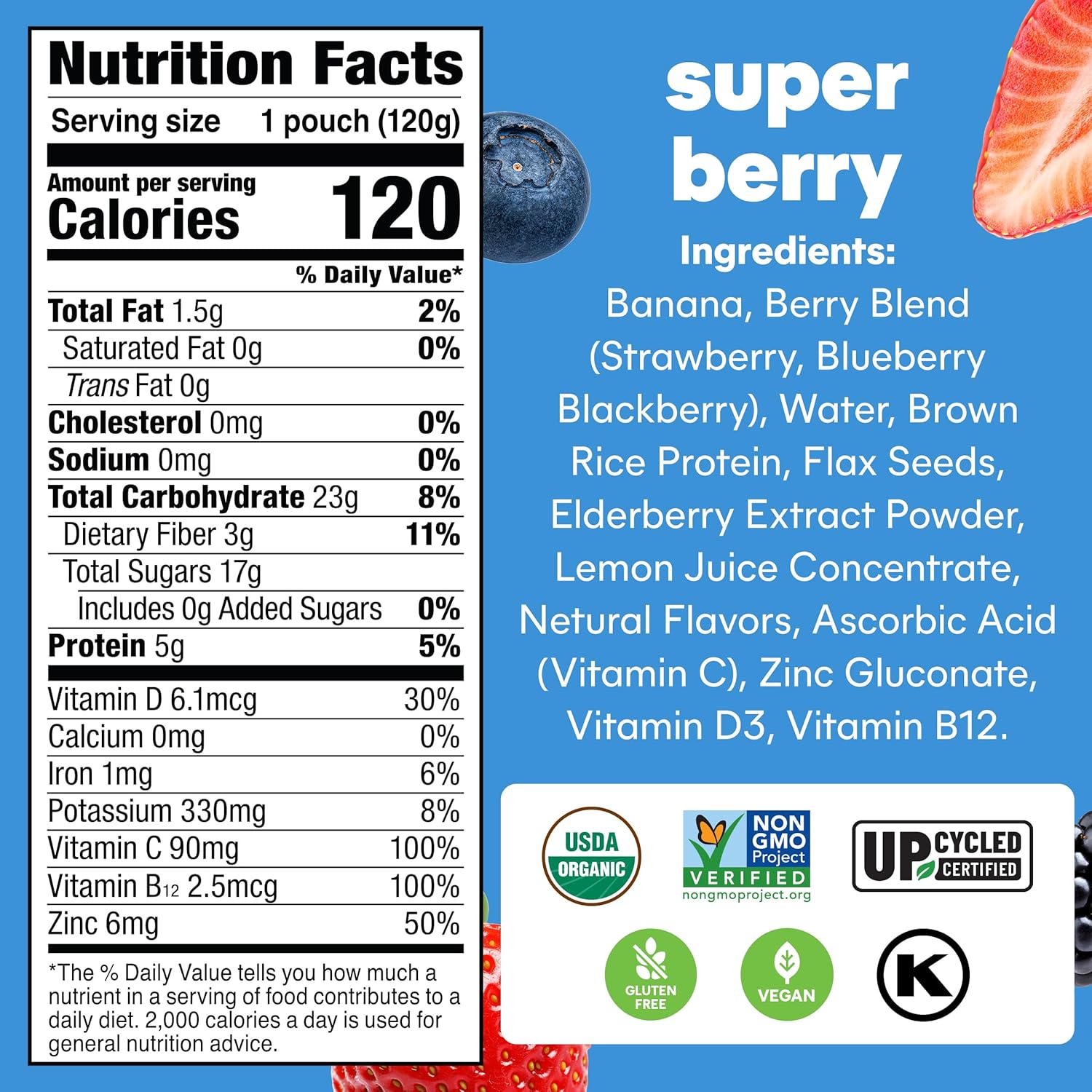 Noka Superfood Fruit Smoothie Pouches, Super Berry With Immune Support, Healthy Snacks With Elderberry, Flax Seed, Plant Protein, And Prebiotic Fiber, Gluten Free And Vegan, 4.22 Oz, 12 Count