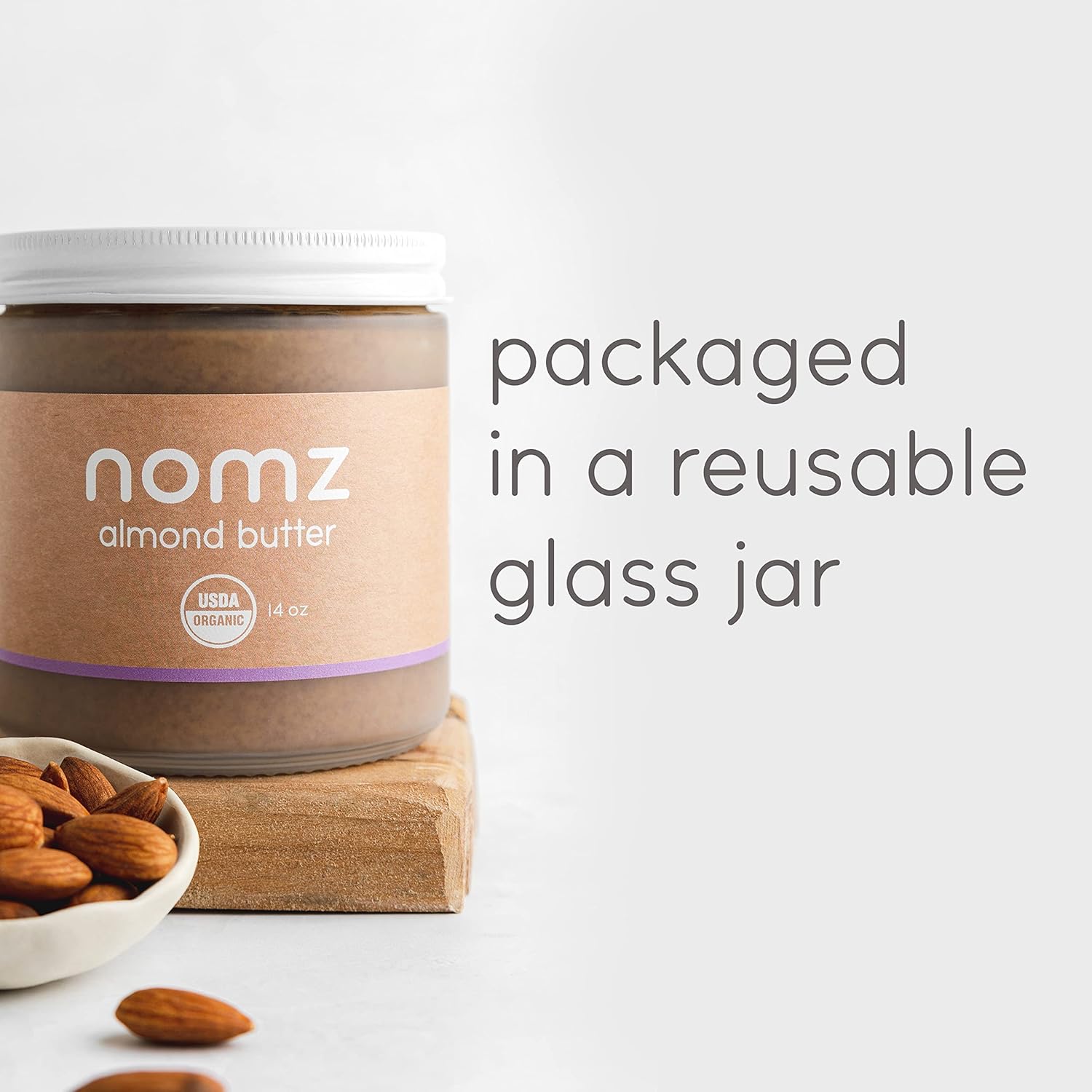 About this item SINGLE INGREDIENT: This one-ingredient delicious butter is made purely of organic dry roasted almonds and nothing else. The smooth and creamy texture is rich with nutty flavor without the worry of added ingredients, fillers, or preservatives like other nut butters. FITS EVERY DIETARY LIFESTYLE: Vegan, Keto-friendly, Whole 30 compliant, and more, each bite fits into any dietary need. Our nut butters are non-GMO, gluten-free, paleo, and offer no added or refined sugars. Plus, gives you energy to move throughout your day without a crash. ALMOND BENEFITS: Loaded with nutrients, almonds are a classic superfood of healthy fats, vitamins, minerals, and fiber that help with digestion. Each serving of our butter has 6g of protein to help fuel your energy throughout the day. MANY WAYS TO ENJOY: Drizzle over a variety of favorite foods like smoothies, snacks, or fruit and you can even enjoy a spoonful of this healthy butter by itself. Each serving offers amazing quality and pureness that you can taste, whether for breakfast, lunch, or dessert. MORE WAYS TO NOMZ β With an array of clean products there is no limit to the worry-free ways you can enjoy nomz. Try our coconut, pistachio, and almond bites or our Daily Nourish and nut butters, all crafted with the organic, clean ingredients your body loves. You can even cozy up your home with our beeswax, purifying candle featuring an aroma of honey. See more product details,SINGLE INGREDIENT: This one-ingredient delicious butter is made purely of organic dry roasted almonds and nothing else. The smooth and creamy texture is rich with nutty flavor without the worry of added ingredients, fillers, or preservatives like other nut butters,FITS EVERY DIETARY LIFESTYLE: Vegan, Keto-friendly, Whole 30 compliant, and more, each bite fits into any dietary need. Our nut butters are non-GMO, gluten-free, paleo, and offer no added or refined sugars. Plus, gives you energy to move throughout your day without a crash,ALMOND BENEFITS: Loaded with nutrients, almonds are a classic superfood of healthy fats, vitamins, minerals, and fiber that help with digestion. Each serving of our butter has 6g of protein to help fuel your energy throughout the day,MANY WAYS TO ENJOY: Drizzle over a variety of favorite foods like smoothies, snacks, or fruit and you can even enjoy a spoonful of this healthy butter by itself. Each serving offers amazing quality and pureness that you can taste, whether for breakfast, lunch, or dessert,MORE WAYS TO NOMZ β With an array of clean products there is no limit to the worry-free ways you can enjoy nomz. Try our coconut, pistachio, and almond bites or our Daily Nourish and nut butters, all crafted with the organic, clean ingredients your body loves. You can even cozy up your home with our beeswax, purifying candle featuring an aroma of honey
