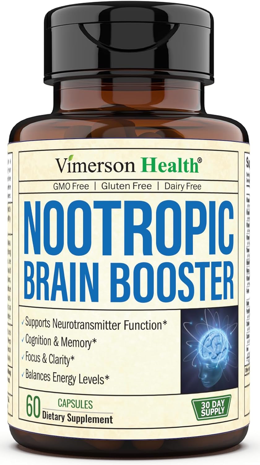 Nootropics Brain Support Supplement - Nootropic Brain Booster For Improved Focus, Concentration & Memory. Brain Nootropic For Brain Health, Mood & Energy Support. Non-Gmo. Made In The Usa. 60 Capsules