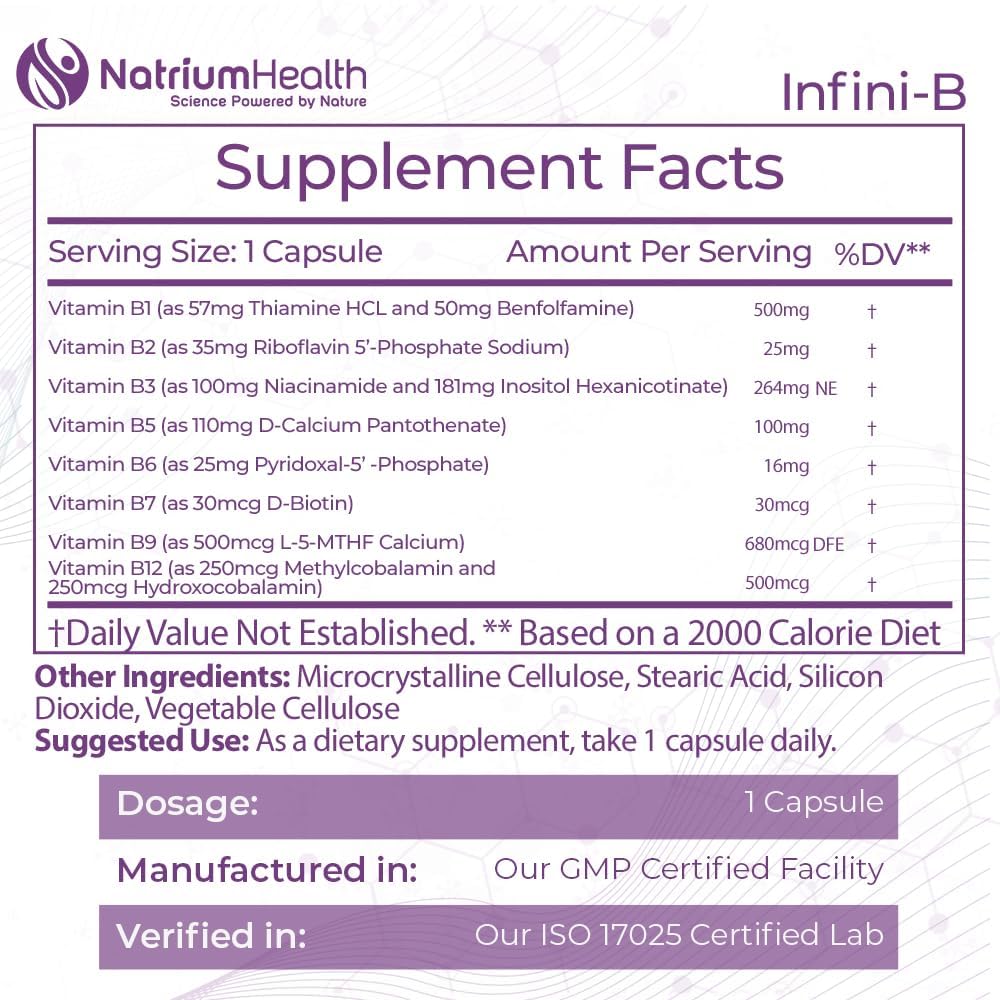 DESCRIPTION : Nootropics Depot Infini-B Capsules | Optimized Vitamin B Complex | Energy, Mood, and Cognitive Support | Natrium Health