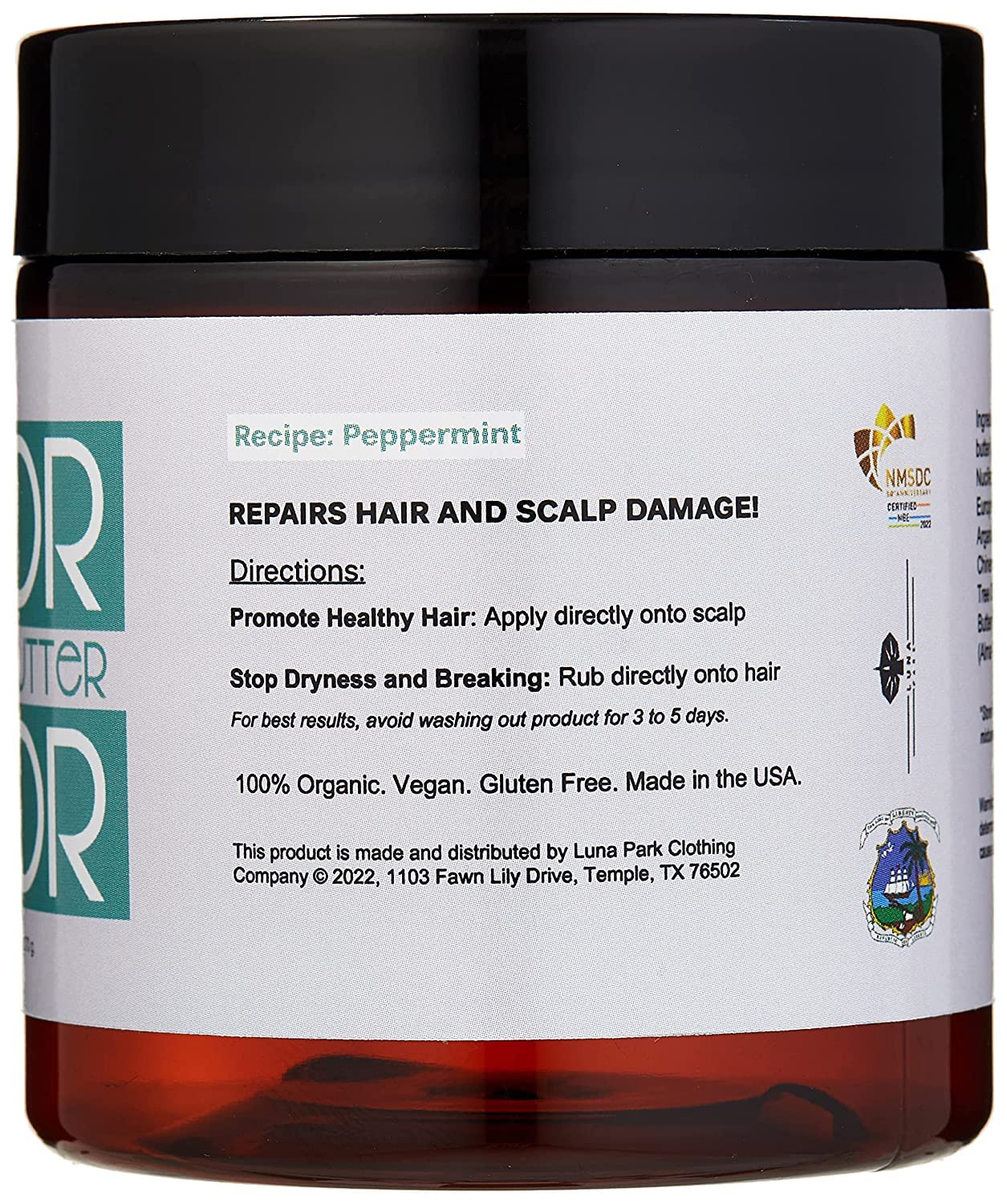 Norbor Beauty Organic Hair Butter; treats damaged scalp, and thinning hair; prevents frizz, and promotes hair growth (8 oz Mint Scent)