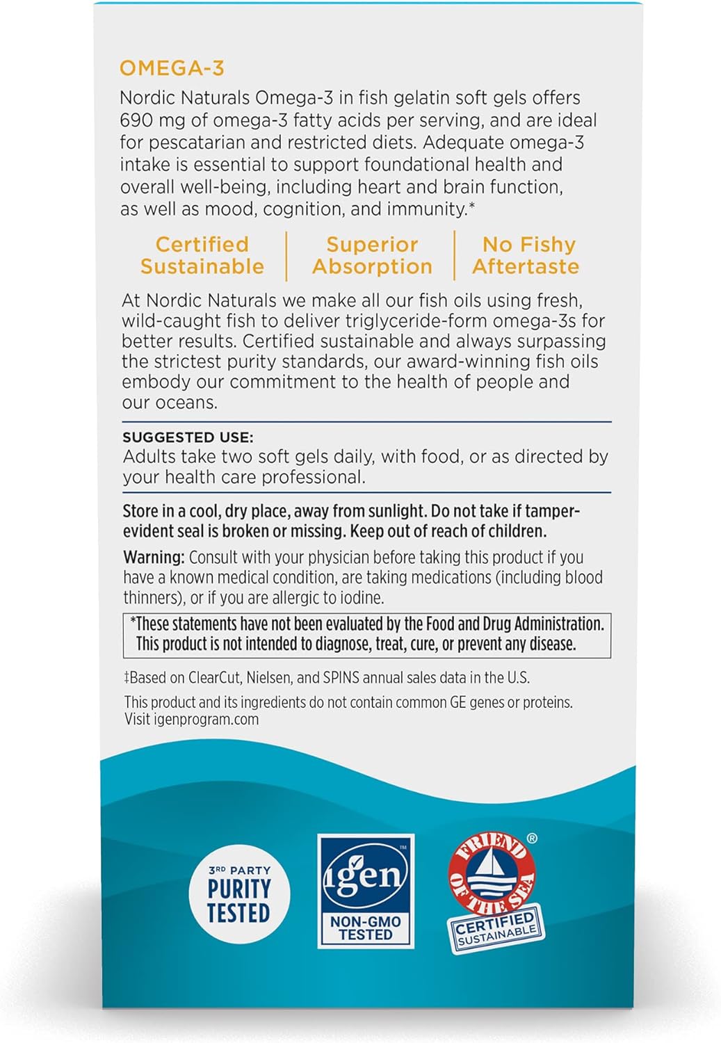 2 >PERFECT FOR THOSE NEW TO FISH OIL - Nordic Naturals Omega-3 provides a generous serving of omega-3s in fish gelatin soft gels, and meets the daily recommended dose suggested by the American Heart Association to support a healthy heart