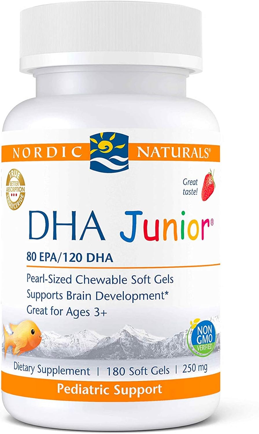 Nordic Naturals Pro DHA Junior, Strawberry - 180 Mini Chewable Soft Gels - 250 mg Total Omega-3s with EPA & DHA - Brain Development & Visual Function - Non-GMO - 45 Servings