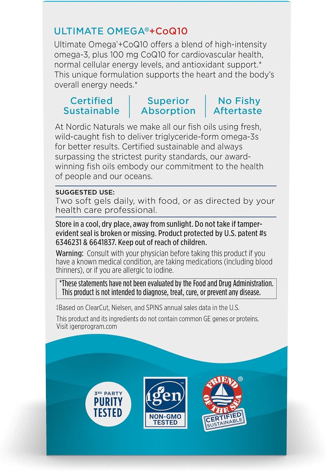 Nordic Naturals Ultimate Omega + Coq10, Lemon - 60 Soft Gels - 1280 Mg Omega-3 + 100 Mg Coq10 - Heart Health, Cellular Energy, Antioxidant Support - Non-Gmo - 30 Servings