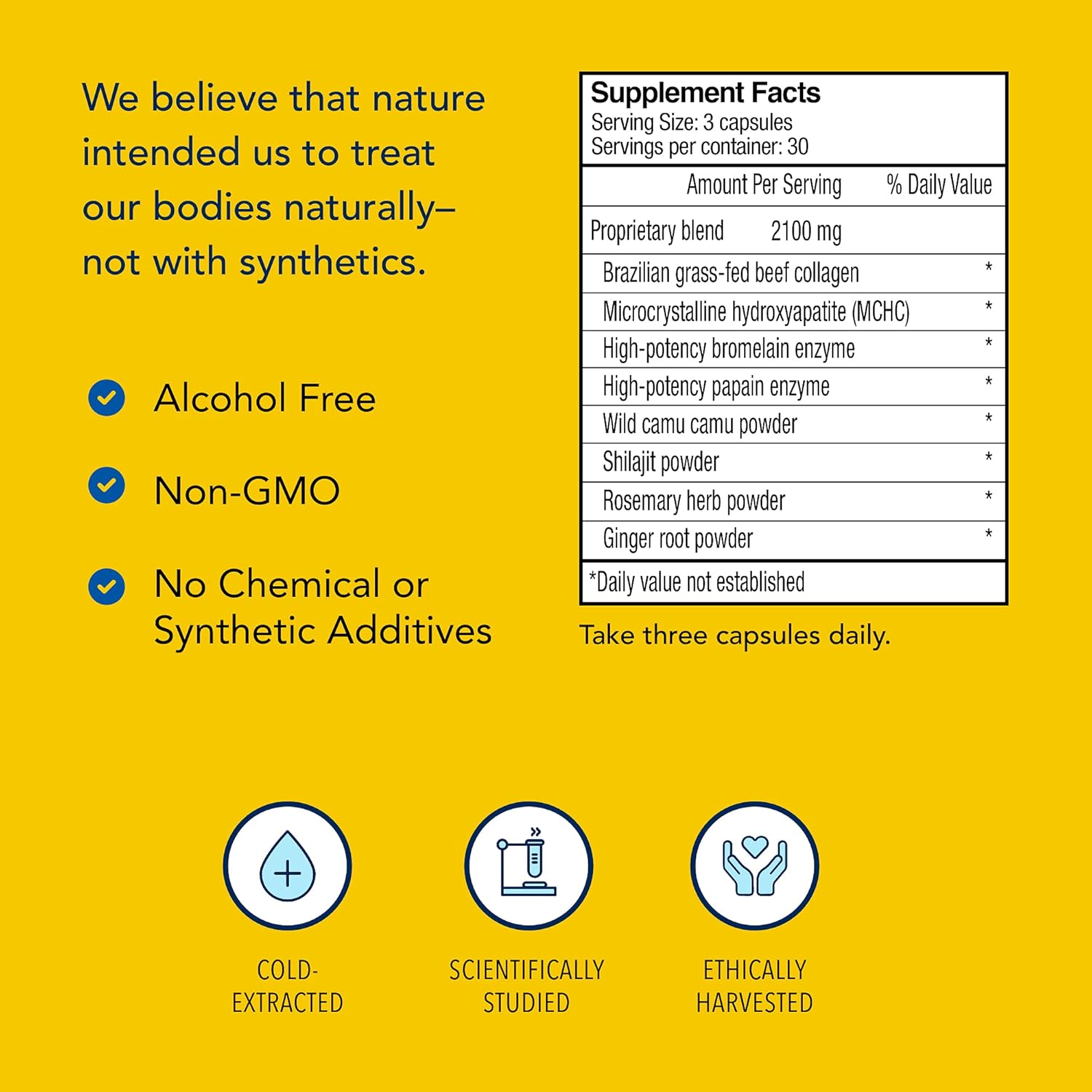 About this item Hydrolyzed, Predigested Collagen; Collagen Power-Plus combines high-quality, Brazilian, grass-fed collagen with calcium-rich, New Zealand, grass-fed microcrystalline hydroxyapatite (MCHC), and the protein digestive enzymes bromelain and papain Healthy Bones, Joints & Muscular System; Collagen helps support a healthy joint, skin & hair response; With age, the need for additional collagen increases Full Ingredient List; Brazilian grass-fed beef collagen, MCHC, bromelain enzyme, papain enzyme, wild camu camu powder, shilajit powder, rosemary herb powder, ginger root powder; Free of all chemicals, pesticides & additives; Non-GMO Remote & Wild-Sourced Premium Ingredients; Gathered from pristine, untouched regions of the world, North American Herb & Spice uses raw, whole food ingredients that harness the power of nature for supreme nourishment Take Control Of Your Health; All of our premium ingredients are whole food and herbal based, so our products can be taken as long as you need to improve your quality of life โบ See more product details,Hydrolyzed, Predigested Collagen; Collagen Power-Plus combines high-quality, Brazilian, grass-fed collagen with calcium-rich, New Zealand, grass-fed microcrystalline hydroxyapatite (MCHC), and the protein digestive enzymes bromelain and papain,Healthy Bones, Joints & Muscular System; Collagen helps support a healthy joint, skin & hair response; With age, the need for additional collagen increases,Full Ingredient List; Brazilian grass-fed beef collagen, MCHC, bromelain enzyme, papain enzyme, wild camu camu powder, shilajit powder, rosemary herb powder, ginger root powder; Free of all chemicals, pesticides & additives; Non-GMO,Remote & Wild-Sourced Premium Ingredients; Gathered from pristine, untouched regions of the world, North American Herb & Spice uses raw, whole food ingredients that harness the power of nature for supreme nourishment,Take Control Of Your Health; All of our premium ingredients are whole food and herbal based, so our products can be taken as long as you need to improve your quality of life