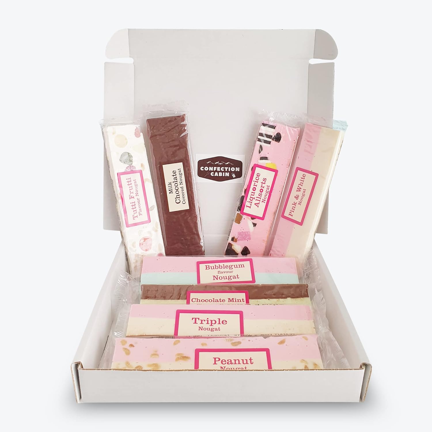 Nougat Gift Box | Selection Of 8 Bars | Individually Wrapped Nougat Sweets 130 G Each | Nostalgic Gift For All Ages (8 Bars, 7 Flavours)