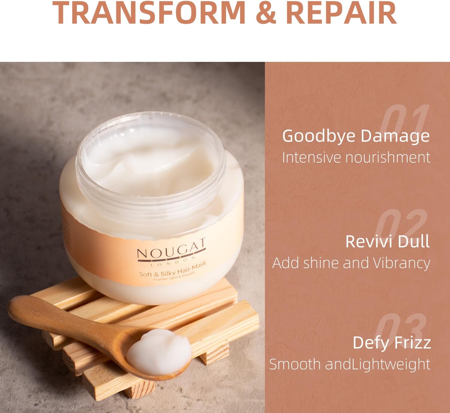 Nougat London Soft & Silky Hair Mask, Intense Hydrating & Nourishing With Botanical Oils, Fast Absorbing, Ideal For Dry Damaged Or Color Treated Hair,Contains Vitamin E,Vitamin B5, Argan Oil 9.17Oz