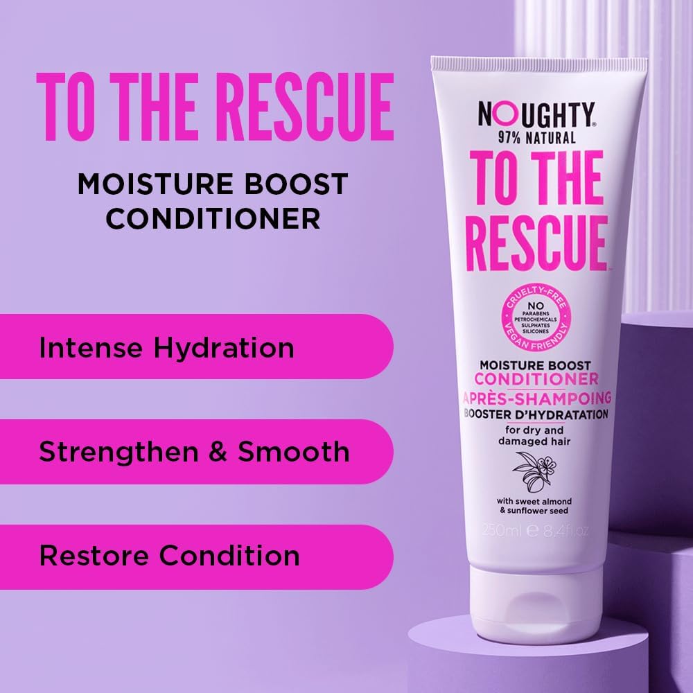 Noughty 97% Natural To The Rescue Moisture Boost Conditioner Sulphate Free Vegan Haircare Hydrating Formula For Dry & Damaged Hair With Sweet Almond And Sunflower Seed 250Ml