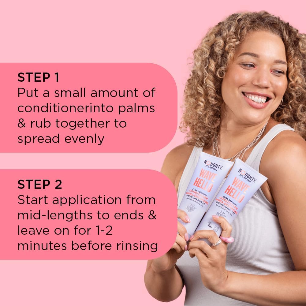 Noughty Wave Hello Curl Defining Conditioner, 97% Natural Sulphate Free Vegan Haircare, Vitamin Rich Formula For Curly & Wavy Hair (250Ml), (Pack Of 1)