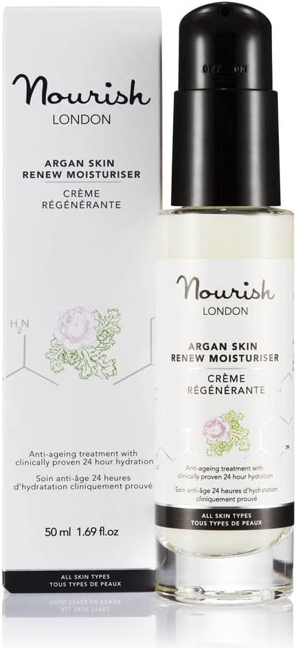 Nourish London Argan Skin Renew Moisturiser 50Ml | Anti-Ageing Daily Moisturiser | Clinically Proven To Boost Hydration By 25% For 24 Hours | 100% Vegan | Cruelty-Free
