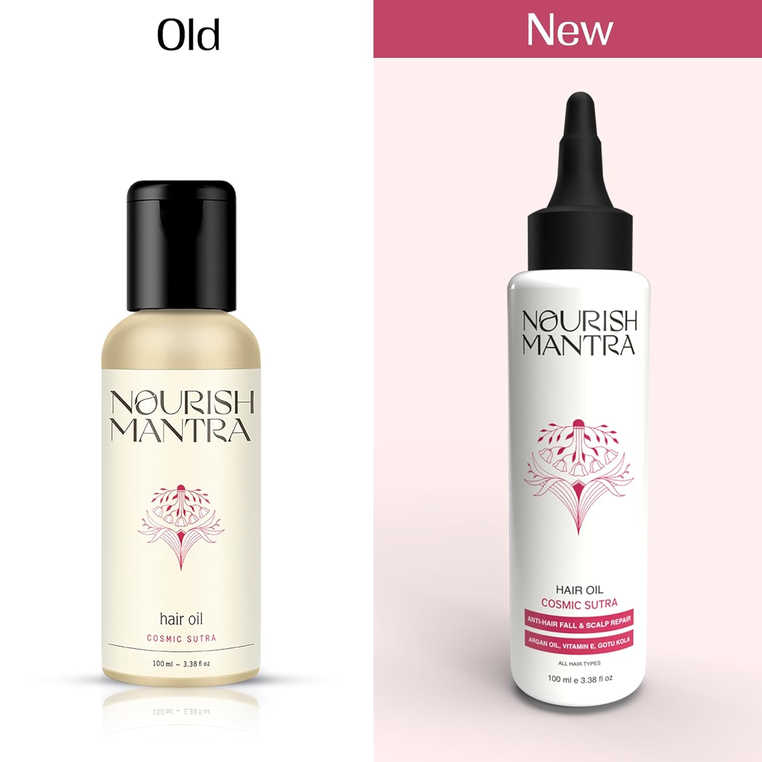 NOURISH MANTRA Cosmic Sutra Hair Oil | With Goodness Of Vitamin E, Gotu Kola & Argan Oil | Hair Fall Control Oil | Free Of Sulphates, And Chemicals | For All Hair Types. (100 Ml (Pack Of 1) Black)