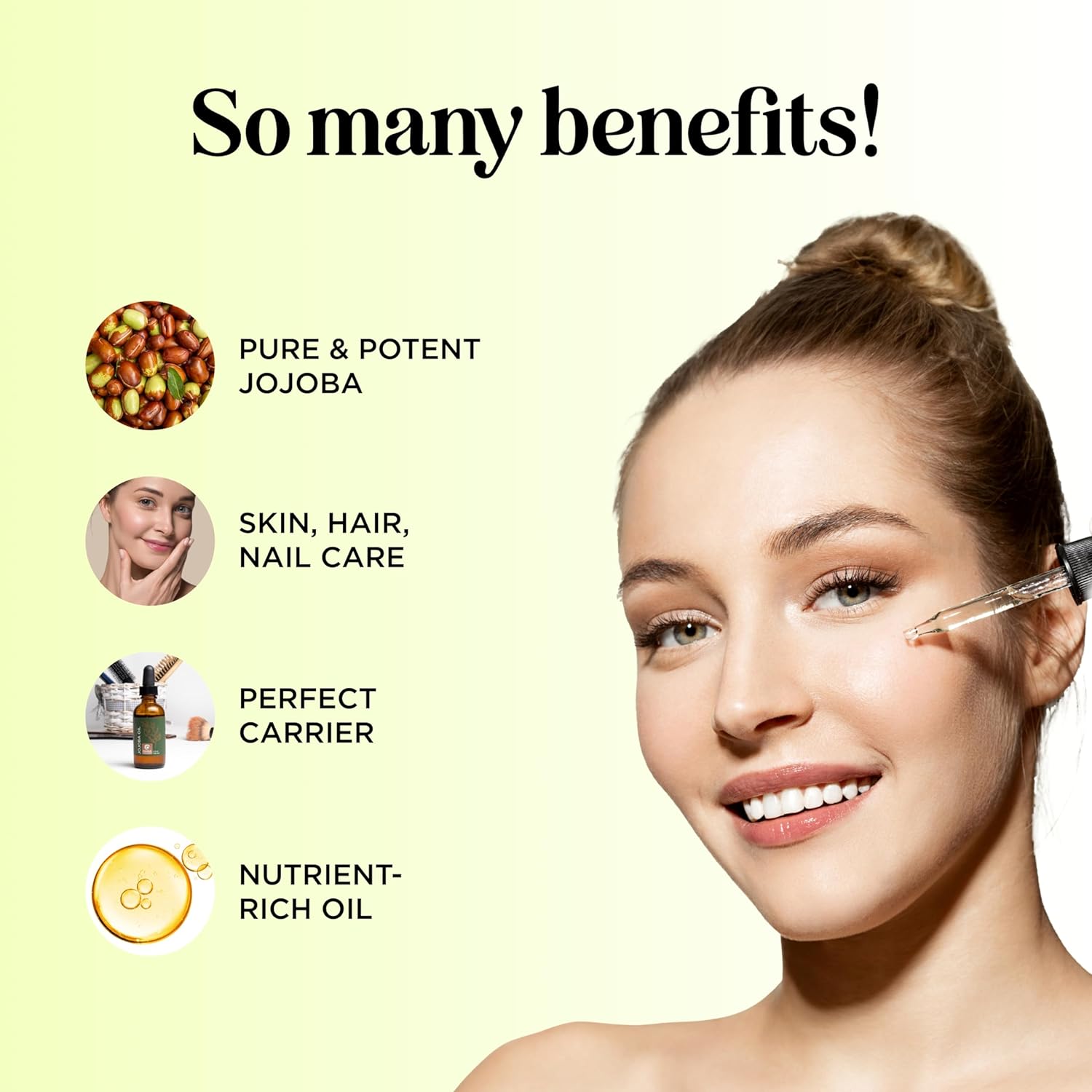 DIY Skin Care - Jojoba is one of the best carrier oils for essential oils for a wide range of anti aging skin care diy beauty products that can help improve the look and feel of hair skin and nailsJojoba Oil for Face - Try jojoba facial oil for dry skin and see what all the fuss is about as this fatty acid hydrating face moisturizer face oil for women and men offers premium natural face carePure Hair Oil - Anyone looking for hair oils to improve their hair shine and hydration can benefit from our hair oil and dry hair moisturizer for frizzy hair control that can enhance radiance and glowJojoba Body Oil for Dry Skin - Jojoba oil for skin is one of the most popular skin oils for body care and body oils for women as this natural body oil helps lock in moisture for gorgeous glowing skinMaple Holistics Quality - We are proud to be a leading source of natural oils and we invite you to try our jojoba oil because we believe in real ingredients for real results for head to toe coverageNourishing Cold Pressed Jojoba Oil - Pure Jojoba Oil for Hair Skin and Nails plus Emollient and Occlusive Dry Skin Moisturizer for Face and Body Care - Jojoba Carrier Oil for Essential Oils Mixing