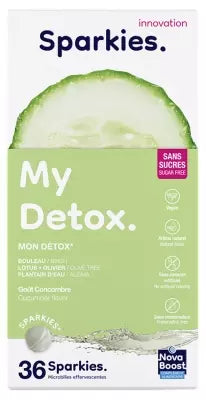 Nova Boost Sparkies My Detox 36 Effervescent Microbeads Is A Dietary Supplement Made From Plants: Lotus Leaves, Olive Leaves, Birch Sap Extract, Water Plantain Extract, With Sweetener (Stevia). The Birch Is Traditionally Used For Its Beneficial Influence On The Digestion And The Process Of Detoxification Of The Organization. Cucumber Flavour. Sugar Free. No Artificial Dye, No Preservatives. Vegan