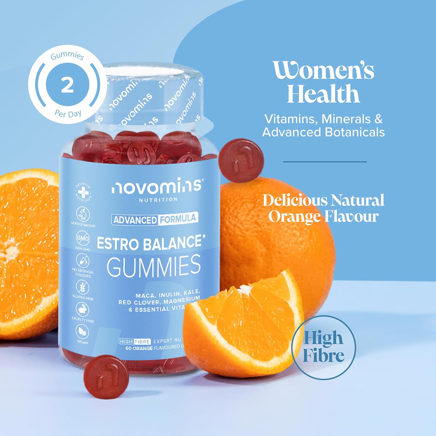 Novomins Estro Gummies β Womens Multivitamins - With Vitamin D, B6, B12, Maca & Kale Extract, Inulin - 60 Vegan Gummies