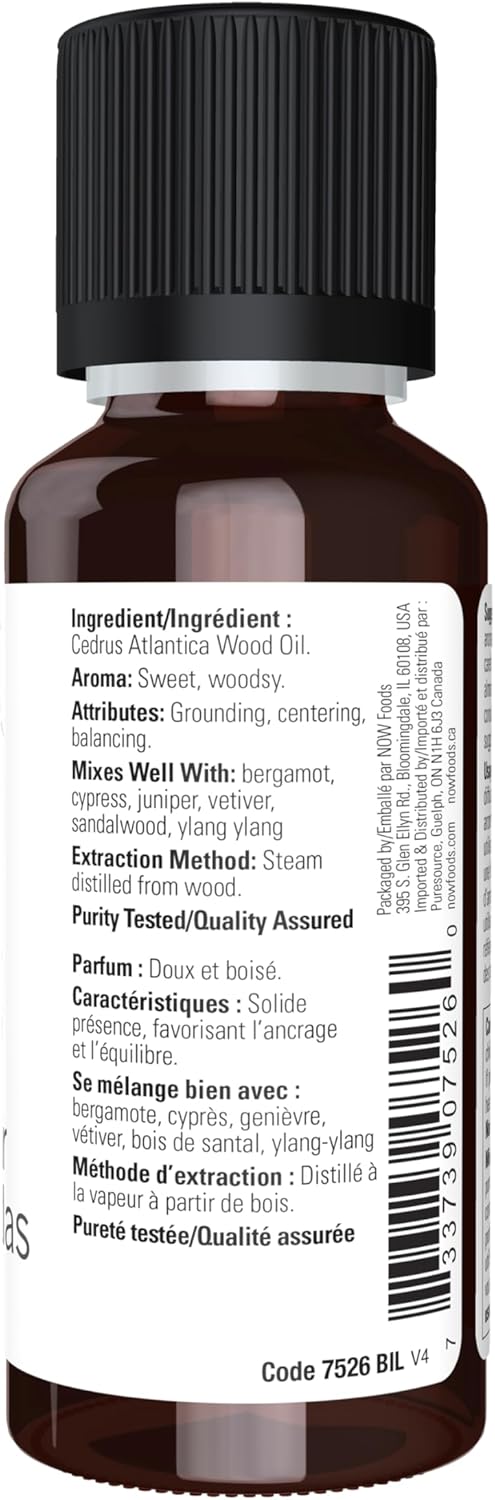 Now Essential Oils, Atlas Cedar Oil, Balancing Aromatherapy Scent, Steam Distilled, 100% Pure, Vegan, Child Resistant Cap, 1-Ounce (Pack Of 2)
