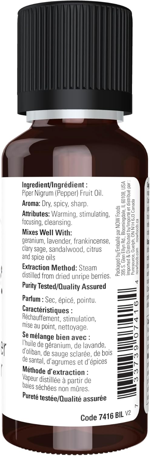 Now Essential Oils, Black Pepper Oil, Spicy Aromatherapy Scent, Steam Distilled, 100% Pure, Vegan, Child Resistant Cap, 1-Ounce