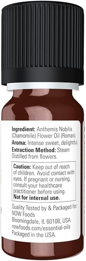 Now Essential Oils, Chamomile Oil, Delightful Aromatherapy Scent, Steam Distilled, 100% Pure, Vegan, Child Resistant Cap, 10-Ml