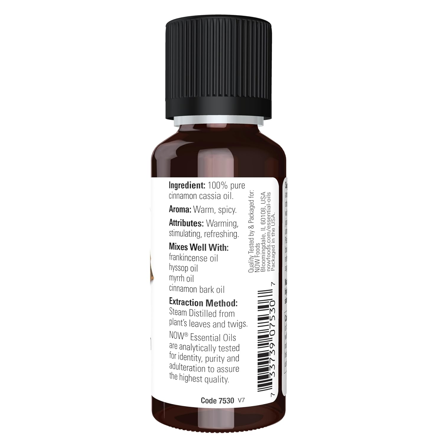 Now Essential Oils, Cinnamon Cassia Oil, Warming Aromatherapy Scent, Steam Distilled, 100% Pure, Vegan, Child Resistant Cap, 1-Ounce (Pack Of 2)