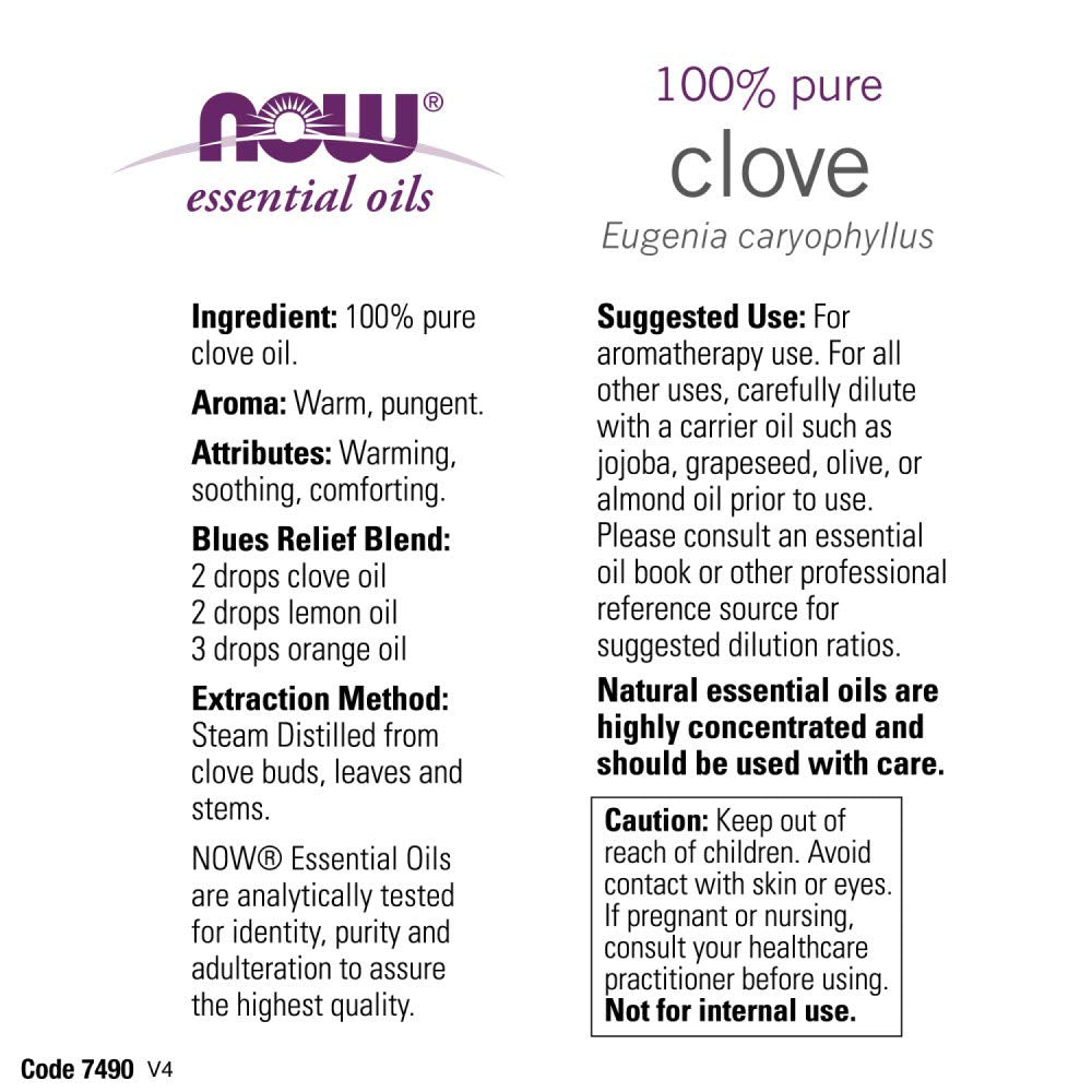 Now Essential Oils, Clove Oil, Balancing Aromatherapy Scent, Steam Distilled, 100% Pure, Vegan, Child Resistant Cap, 2-Ounce