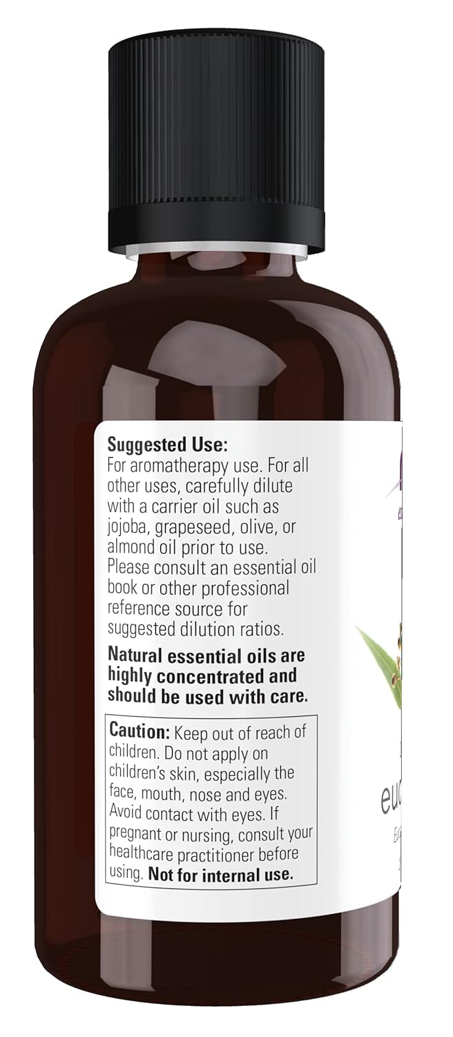 Now Essential Oils, Eucalyptus Oil, Clarifying Aromatherapy Scent, Steam Distilled, 100% Pure, Vegan, Child Resistant Cap, 2-Ounce