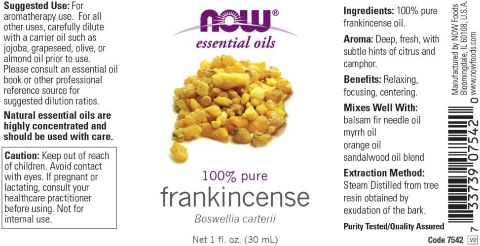 Now Essential Oils, Frankincense Oil, Centering Aromatherapy Scent, Steam Distilled, 100% Pure, Vegan, Child Resistant Cap, 1-Ounce
