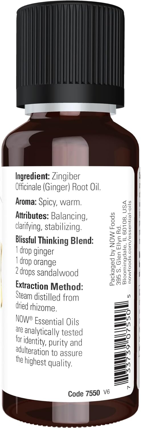 Now Essential Oils, Ginger Oil, Spicy Aromatherapy Scent, Steam Distilled, 100% Pure, Vegan, Child Resistant Cap, 1-Ounce
