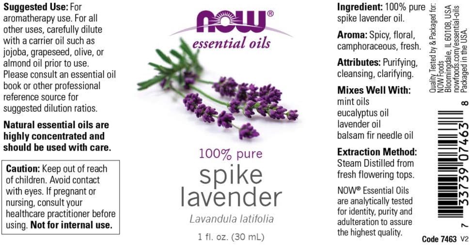 Now Essential Oils, Spike Lavender, Floral Aromatherapy Scent, Steam Distilled, 100% Pure, Vegan, Child Resistant Cap, 1-Ounce