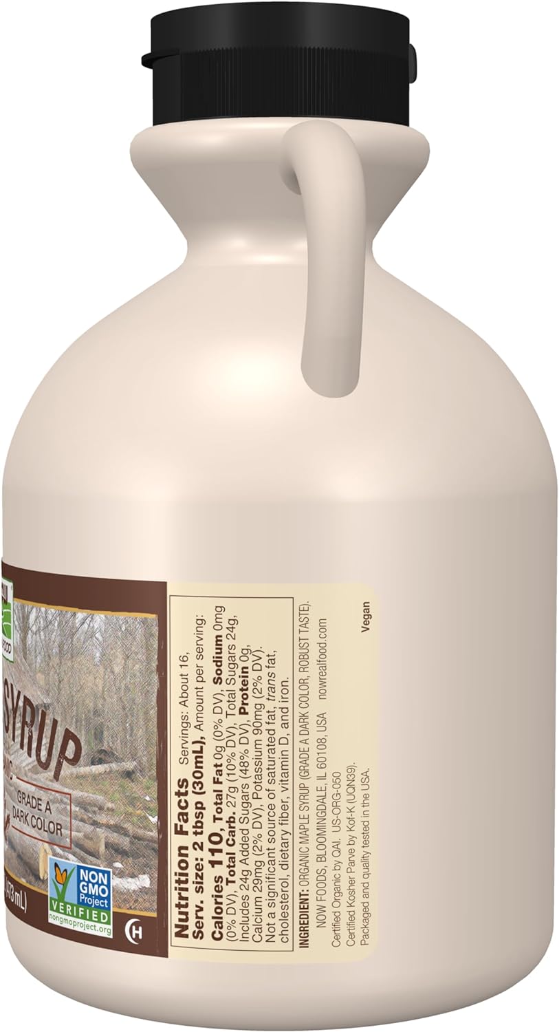 Now Foods, Certified Organic Maple Syrup, Grade A Dark Color, Certified Non-Gmo, Pure, Robust Taste, 16-Ounce