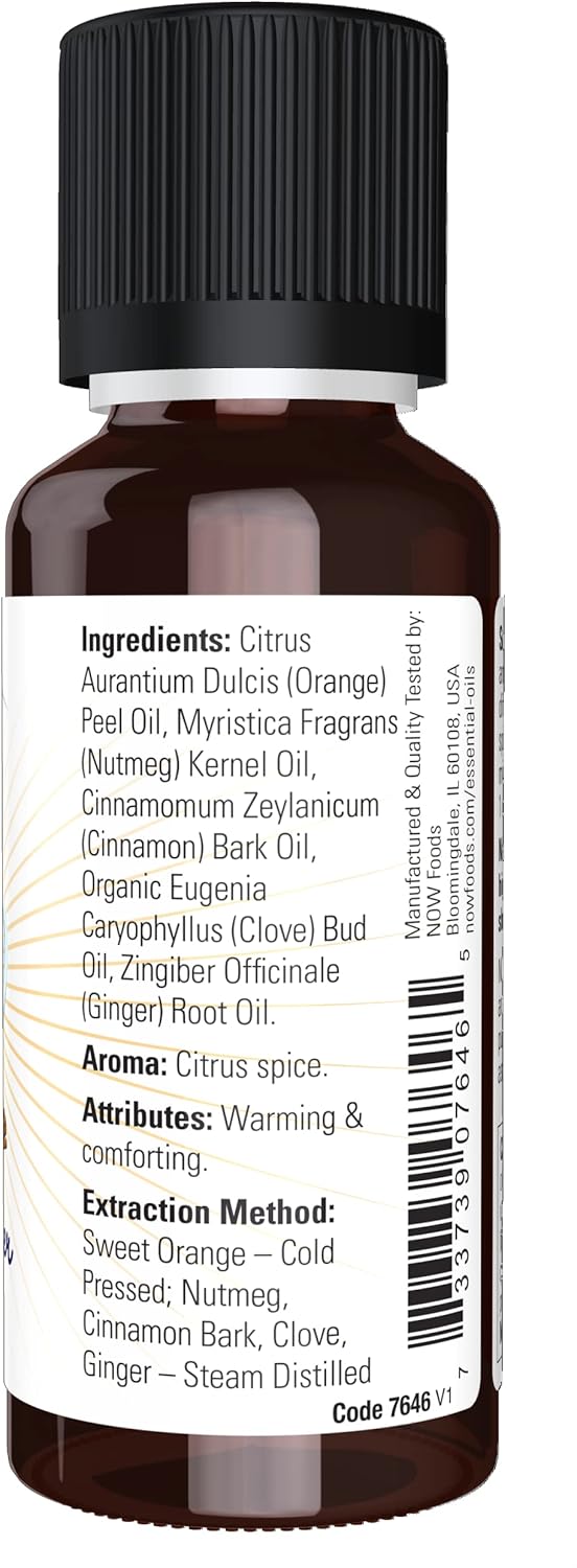 Now Foods Essential Oils, Spiced Cider Oil Blend, Citrus Spice Scent With Warm And Comforting Attributes, 1-Ounce
