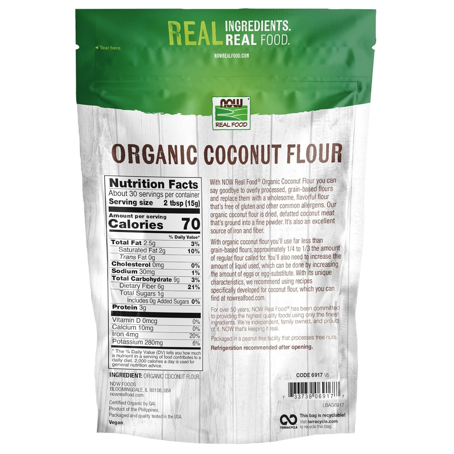 Now Foods, Organic Coconut Flour, Unsweetened, Excelent Source Of Fiber, No Added Sulfites, Certified Non-Gmo, 16-Ounce (Packaging May Vary) (Pack Of 2)
