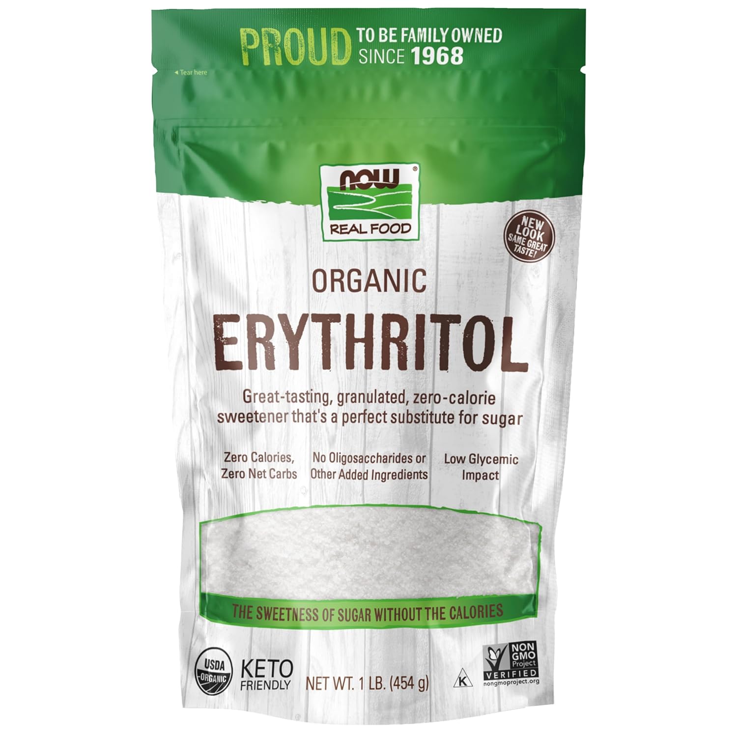 Now Foods, Organic Erythritol, Pleasant Sweetner For Reduced-Calorie And Sugar-Free Recipes, Zero-Calorie, Low Glycemic Impact, 1-Pound (Packaging May Vary)
