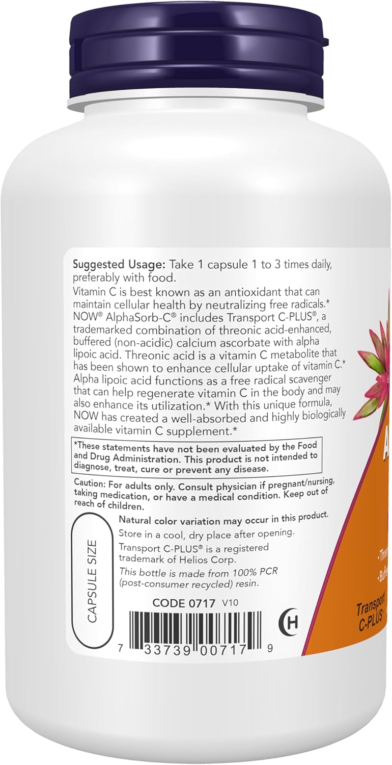 Vitamin C Is Best Known As An Antioxidant That Can Maintain Cellular Health By Neutralizing Free Radicals.* Now® Alphasorb-C® Includes Transport C-Plus®, A Trademarked Combination Of Threonic Acid-Enhanced, Buffered (Non-Acidic) Calcium Ascorbate With Alpha Lipoic Acid. Threonic Acid Is A Vitamin C Metabolite That Has Been Shown To Enhance Cellular Uptake Of Vitamin C.* Alpha Lipoic Acid Functions As A Free Radical Scavenger That Can Help Regenerate Vitamin C In The Body And May Also Enhance Its Utilization.* With This Unique Formula, Now® Has Created A Well-Absorbed And Highly Biologically Available Vitamin C Supplement.* Transport C-Plus® Is A Registered Trademark Of Helios Corp. Natural Color Variation May Occur In This Product