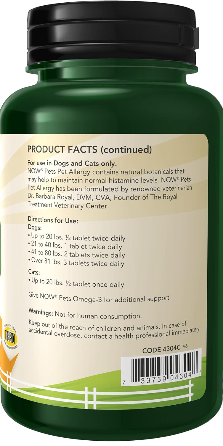Now Pet Health, Pet Allergy Supplement, Formulated For Cats & Dogs, Nasc Certified, 75 Chewable Tablets
