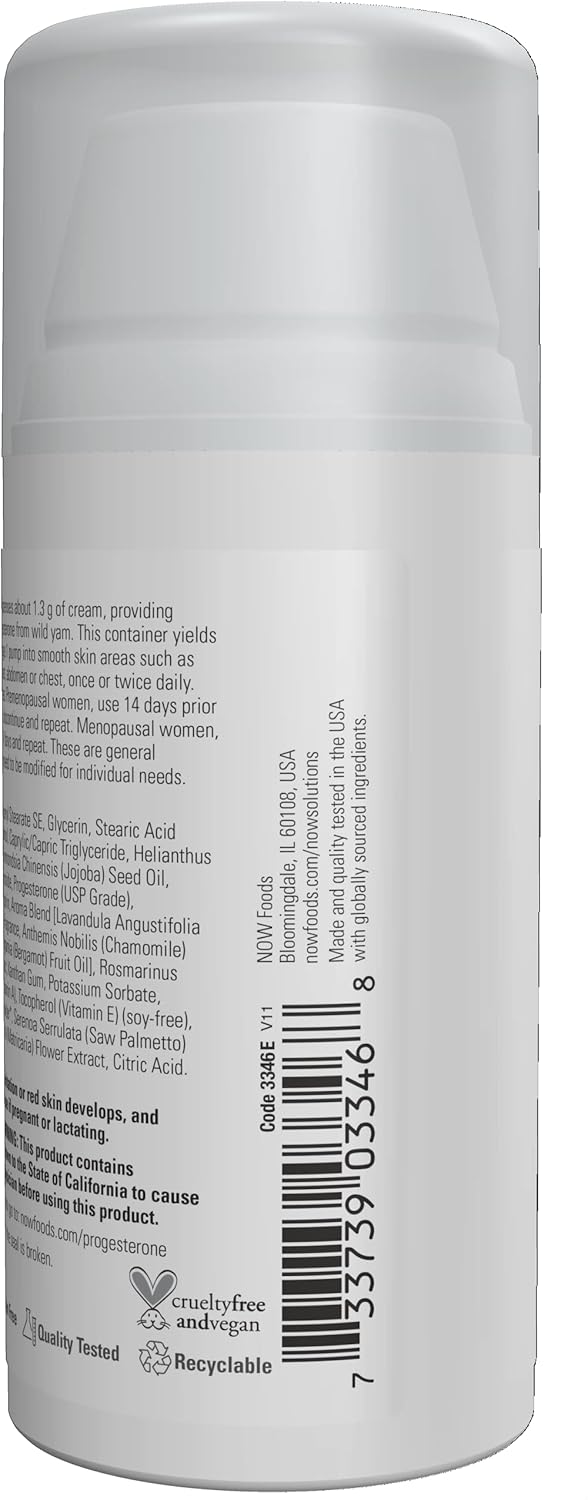 Now Solutions, Natural Progesterone, Balancing Skin Cream With Lavender, 20 Mg Of Natural Progesterone Per Pump, 3-Ounce