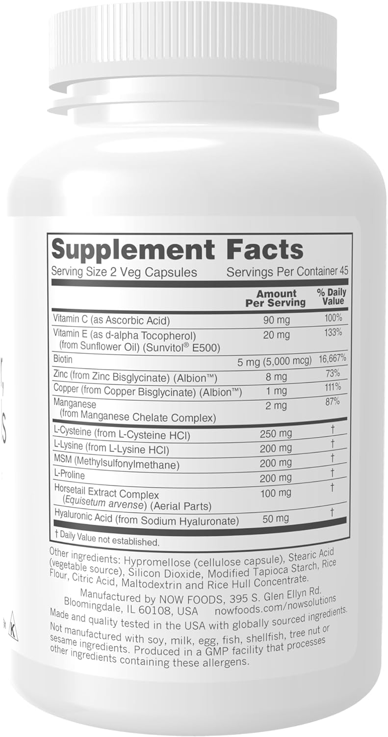 Now Solutions, Vegan Hair, Skin & Nails, Nutritional Support With 5,000 Mcg Biotin, 90 Veg Capsules