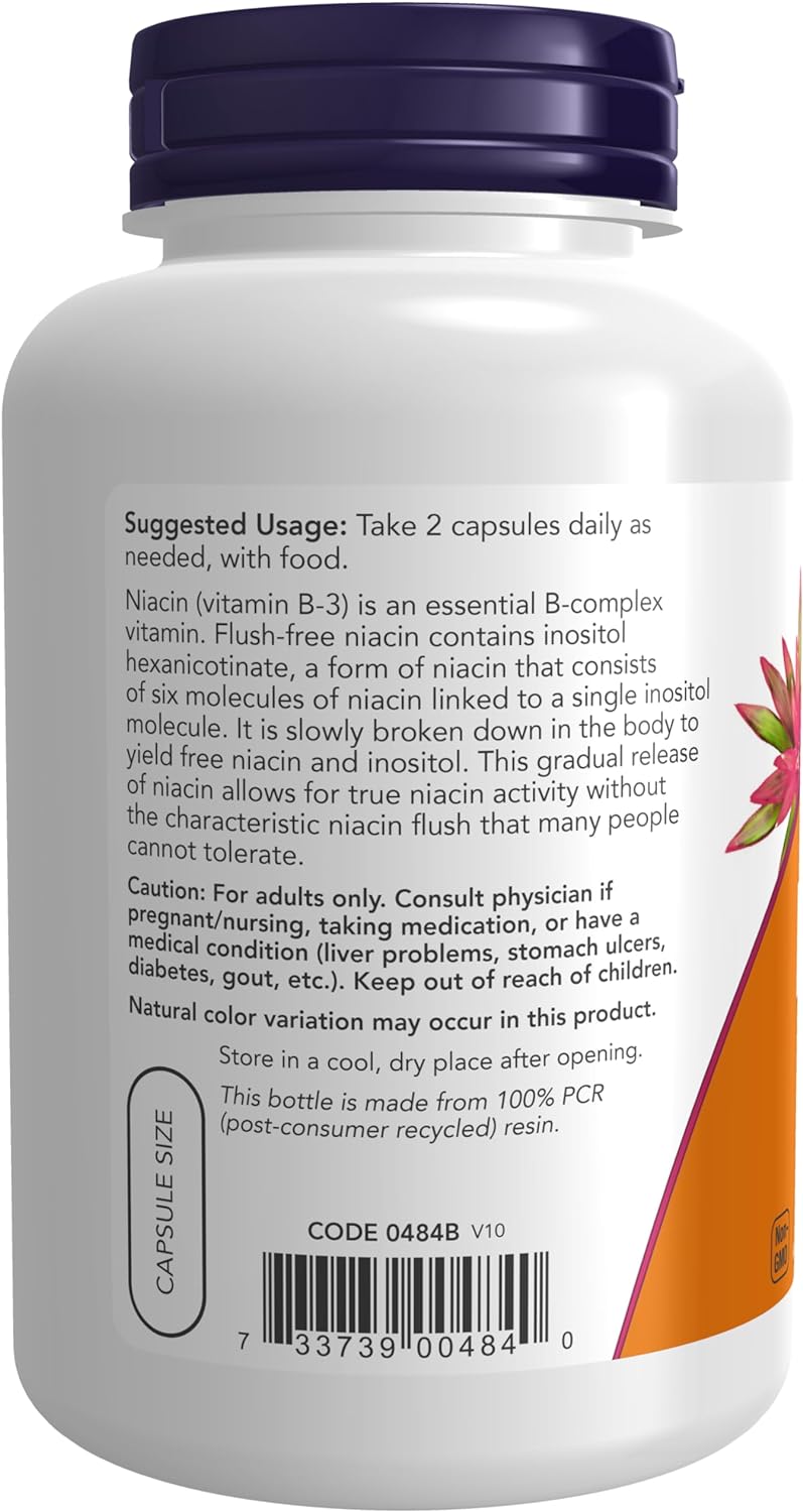 FLUSH-FREE NIACIN 250 mg VEGGIE CAPSULES: Flush-free Niacin contains Inositol Hexanicotinate, a form of Niacin that contains six molecules of niacin linked to a single inositol molecule. It is slowly broken down in the body to yield free niacin and inositol. This gradual release of Niacin allows for true Niacin activity without the characteristic Niacin flush that many people cannot tolerate