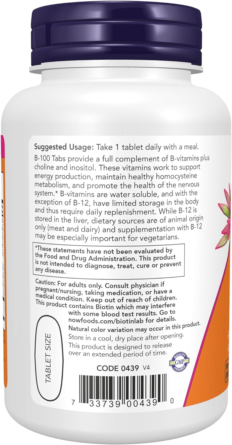 Now Supplements, Vitamin B-100, Sustained Release, Energy Production*, Nervous System Health*, 100 Tablets