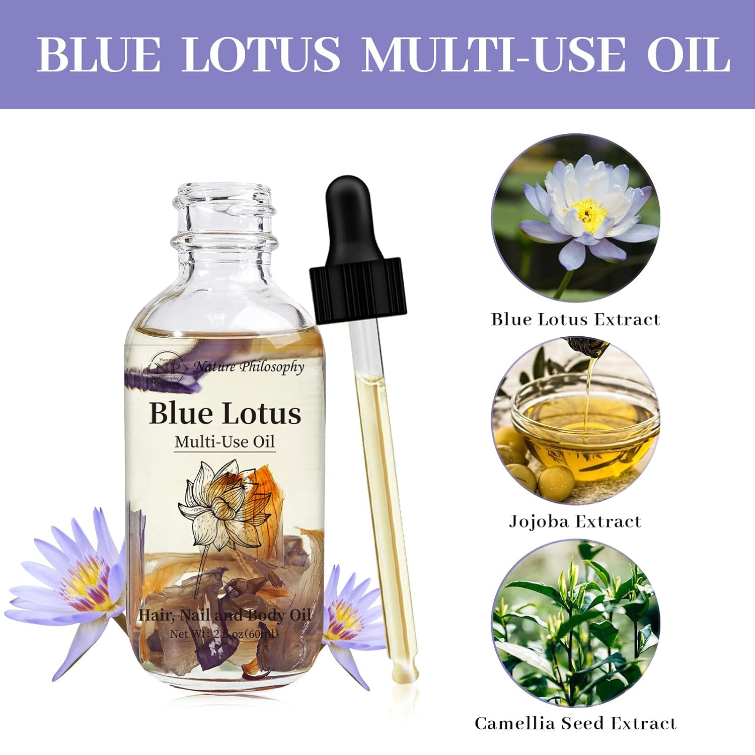Np Natures Philosophy Blue Lotus Multi-Use Oil For Face, Body And Hair - Organic Plant Fragrant Essential Oil For Dry Skin, Scalp And Nails - 2 Fl Oz