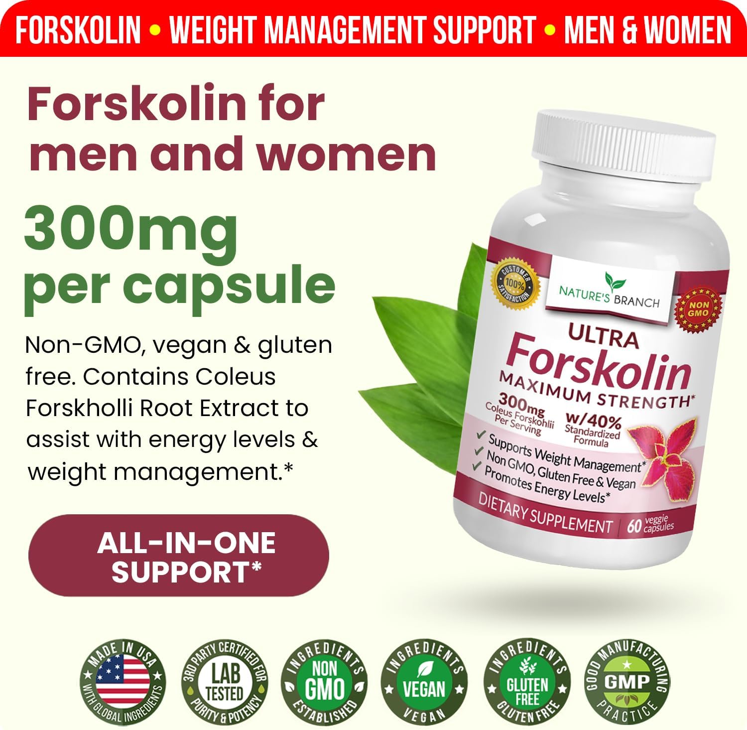 Our Max Strength For Weight Loss* Made With 2X Higher Potency Than Many Leading Brands, Premium Quality Designed With 40% Standardized Extract For A Superior Strength* Everyday Support For Hunger Cravings* Exercise And Diet Along With Our 300Mg Coleus Forskohlii Root Extract Advanced Forskolin Formula* Complex Suitable For Both Women & Men* Helps Promote Optimal Lean Muscle Mass And Weight Management For The Ultimate Experience* Helps Boost Energy & Mood* Assist Your Energy Levels And Support Igniting Your Vitality. See If You Feel Energized Each Day