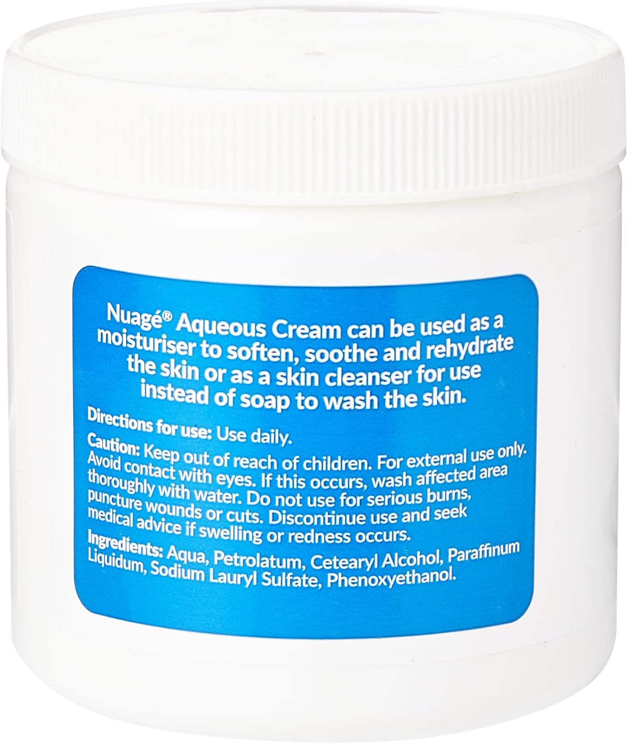 Product Description Nuage Aqueous Cream is essential to any home. The hydrating capability along with the light, non-greasy formulation helps dry skin all year round. Dermatologically tested, lanolin free and fragrance free. The aqueous cream is effectively ointment and water combined to produce a moisturiser for everyone to use. Nuage Aqueous Cream is a non-greasy moisturise. Perfect for treating very dry skin; particularly dermatitis, eczema, chapped sore skin especially during winter months. Suitable for use on the body and to treat and prevent dry chapped lips. Nuage is a trusted popular brand, search . to view other available products. Large, contains 500ml. Ingredients Aqua, Petrolatum, Cetearyl Alcohol, Paraffinum Liquidum, Sodium Lauryl Sulfate, Phenoxyethanol,The information below applies to each unit in the pack,ESSENTIAL SKIN CARE: Nuage Aqueous Cream is essential to any home. The hydrating capability along with the light, non-greasy formulation helps dry skin all year round,GENTLE: Dermatologically tested, lanolin free and fragrance free, the aqueous cream is effectively ointment and water combined to produce a moisturiser for everyone to use,SKIN COMFORT: Nuage Aqueous Cream is a non-greasy moisturiser. Perfect for treating very dry skin; particularly dermatitis, eczema, chapped sore skin especially during winter months,LIPS & SKIN: Suitable for use on the body and to treat and prevent dry chapped lips,ABOUT THE PRODUCT: Large, contains 500ml