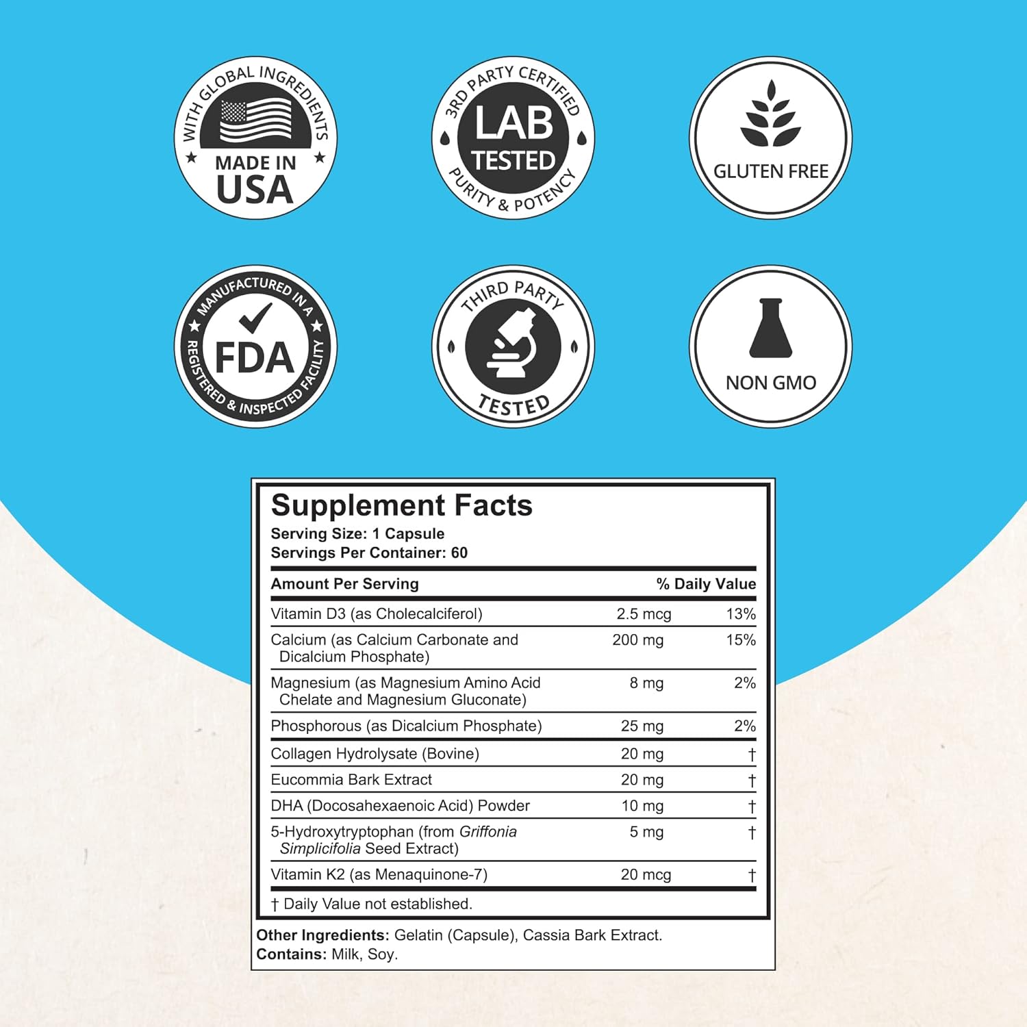 Nubest Doctor Plus - Bone Strength Supplement For Increased Development, Brain Growth, Boost Immunity With Calcium, Vitamin D3, K2, And Herbs For Age 10+ | 60 Capsules | 1 Month Supply