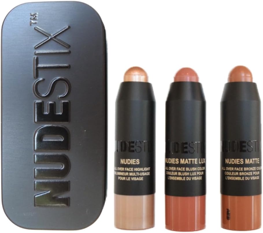 About this item LIMITED-EDITION SET: Exclusive NUDESTIX Mini Soft & Warm Nudes 3-Piece Kit featuring their bestselling Nudies All Over Face Color in blush, bronze, and glow shades. VERSATILE MAKEUP LOOK: Create soft and sculpted makeup looks for cheeks, eyes, and lips with the included Nudies Matte Lux All Over Face Blush, Matte All Over Face Bronze, and Glow All Over Face Highlight colors. SKIN-NOURISHING FORMULA: Infused with Vitamin E, a natural antioxidant, to nourish and hydrate the skin while providing a radiant makeup finish. CONVENIENT PORTABILITY: Portable tin packaging with a built-in makeup mirror allows for quick and easy touch-ups on-the-go, perfect for busy lifestyles or travel. ETHICAL AND EXCLUSIVE: Vegan, gluten-free, and cruelty-free formulation aligns with ethical values, appealing to socially-conscious consumers seeking responsible beauty products. › See more product details,LIMITED-EDITION SET: Exclusive NUDESTIX Mini Soft & Warm Nudes 3-Piece Kit featuring their bestselling Nudies All Over Face Color in blush, bronze, and glow shades,VERSATILE MAKEUP LOOK: Create soft and sculpted makeup looks for cheeks, eyes, and lips with the included Nudies Matte Lux All Over Face Blush, Matte All Over Face Bronze, and Glow All Over Face Highlight colors,SKIN-NOURISHING FORMULA: Infused with Vitamin E, a natural antioxidant, to nourish and hydrate the skin while providing a radiant makeup finish,CONVENIENT PORTABILITY: Portable tin packaging with a built-in makeup mirror allows for quick and easy touch-ups on-the-go, perfect for busy lifestyles or travel,ETHICAL AND EXCLUSIVE: Vegan, gluten-free, and cruelty-free formulation aligns with ethical values, appealing to socially-conscious consumers seeking responsible beauty products