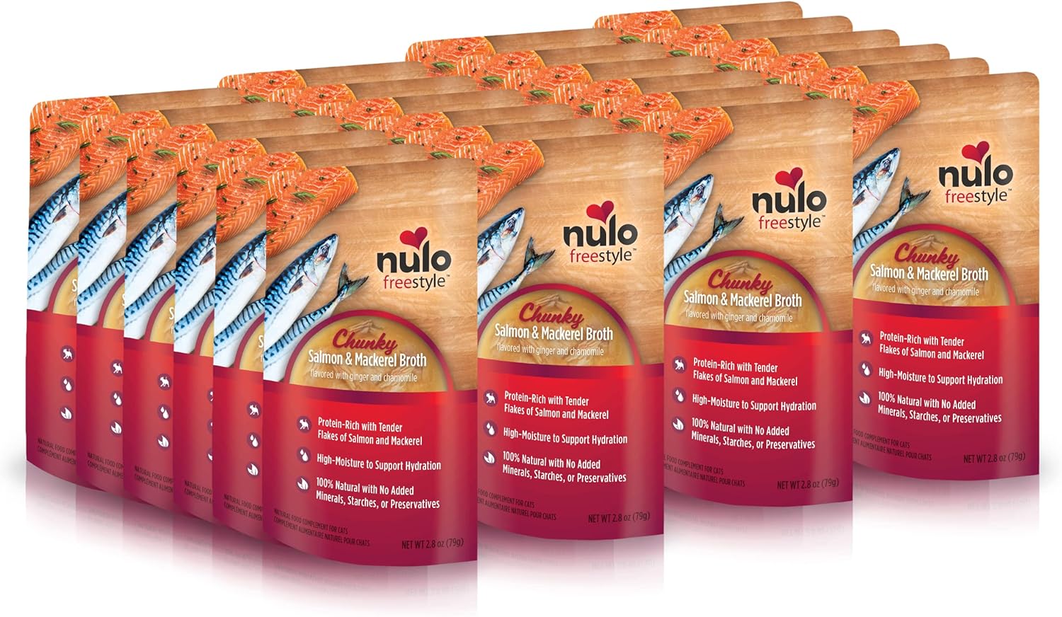CHUNKY SALMON & MACKEREL RECIPE - Nulo Freestyle Cat & Kitten Wet Cat Food Broth helps complement your cat's meal with protein-rich & natural broth that supports hydration and helps satisfy cravings.. 2.8 Oz pouch