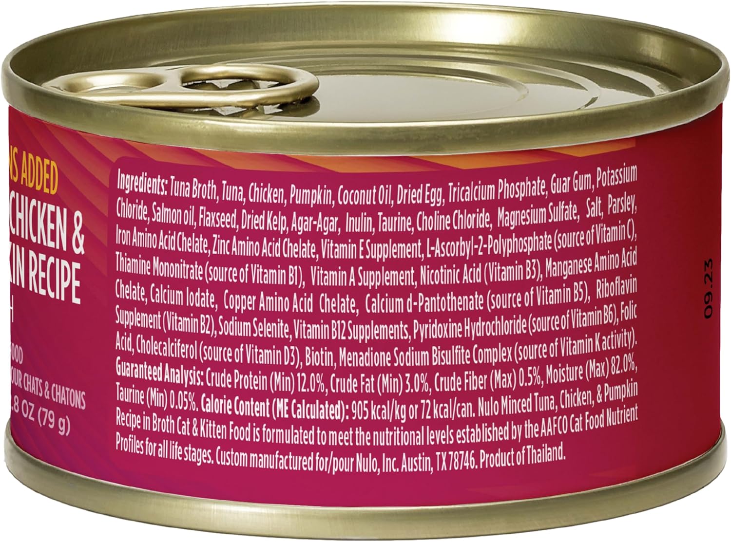 Nulo Grain-Free Minced Wet Canned Cat & Kitten Food, Tuna, Chicken, And Pumpkin In Broth, 2.8 Ounce, 12 Cans