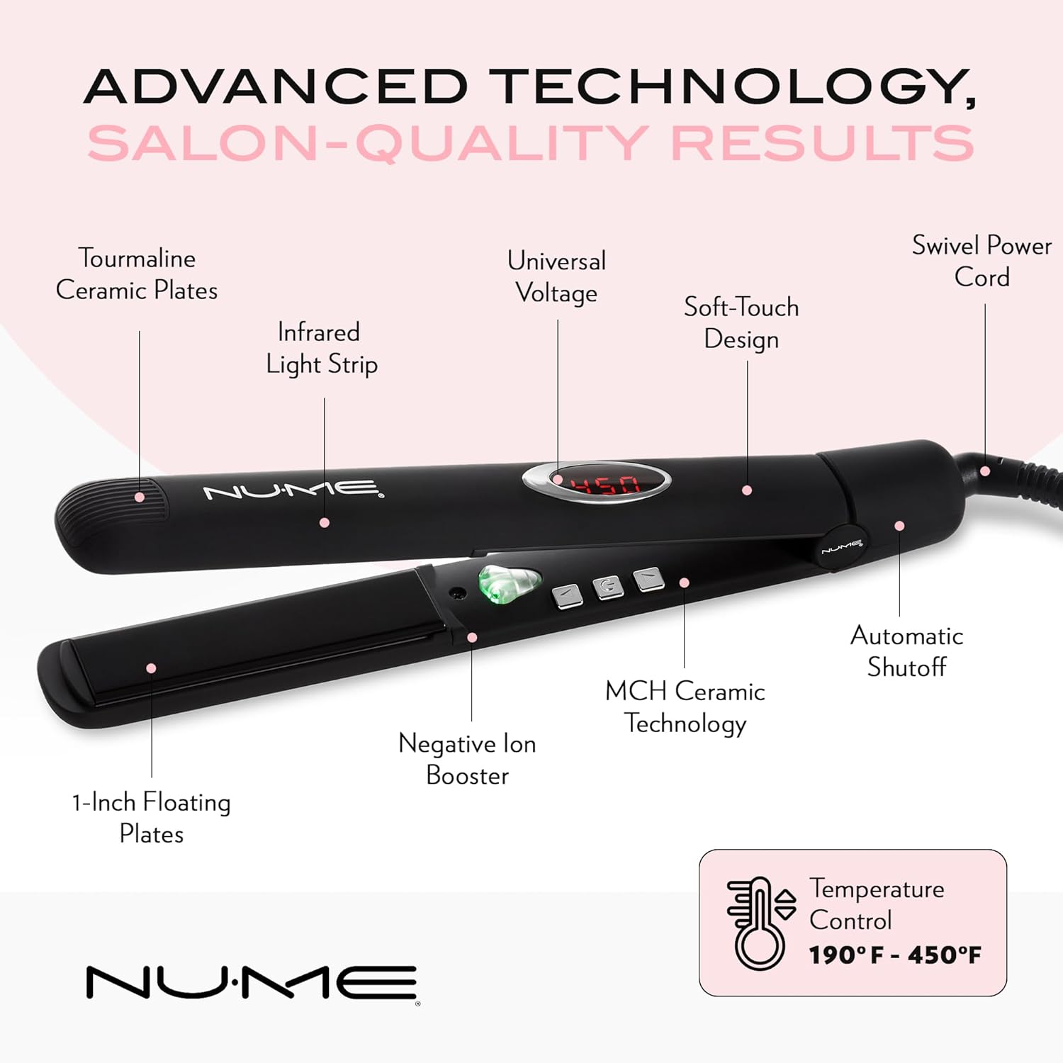 Nume Megastar Hair Straightener Tourmaline Flat Iron–1 Inch Floating Plates With Negative Ion Booster, Infrared Light Strip, Ideal For All Hair Types – Ultra-Smooth And Shiny Results