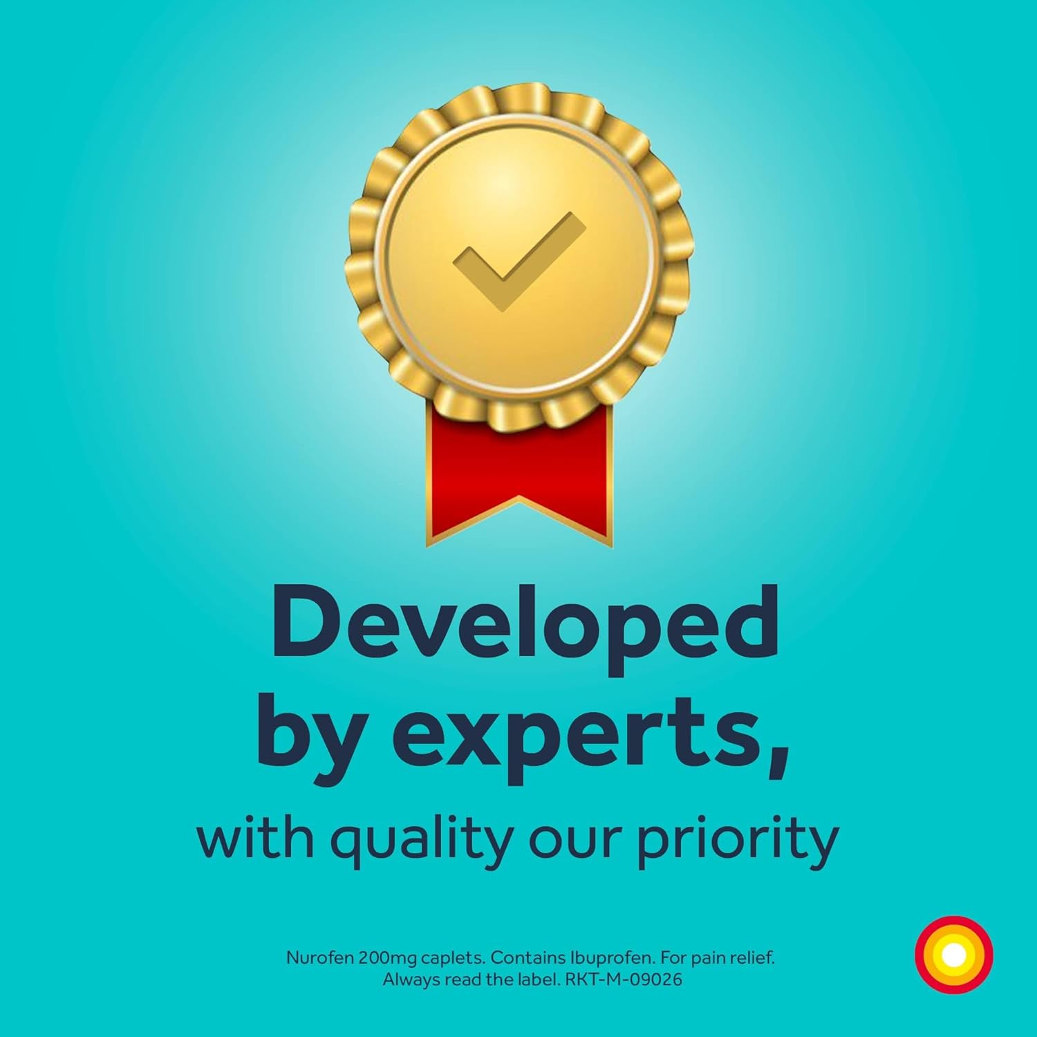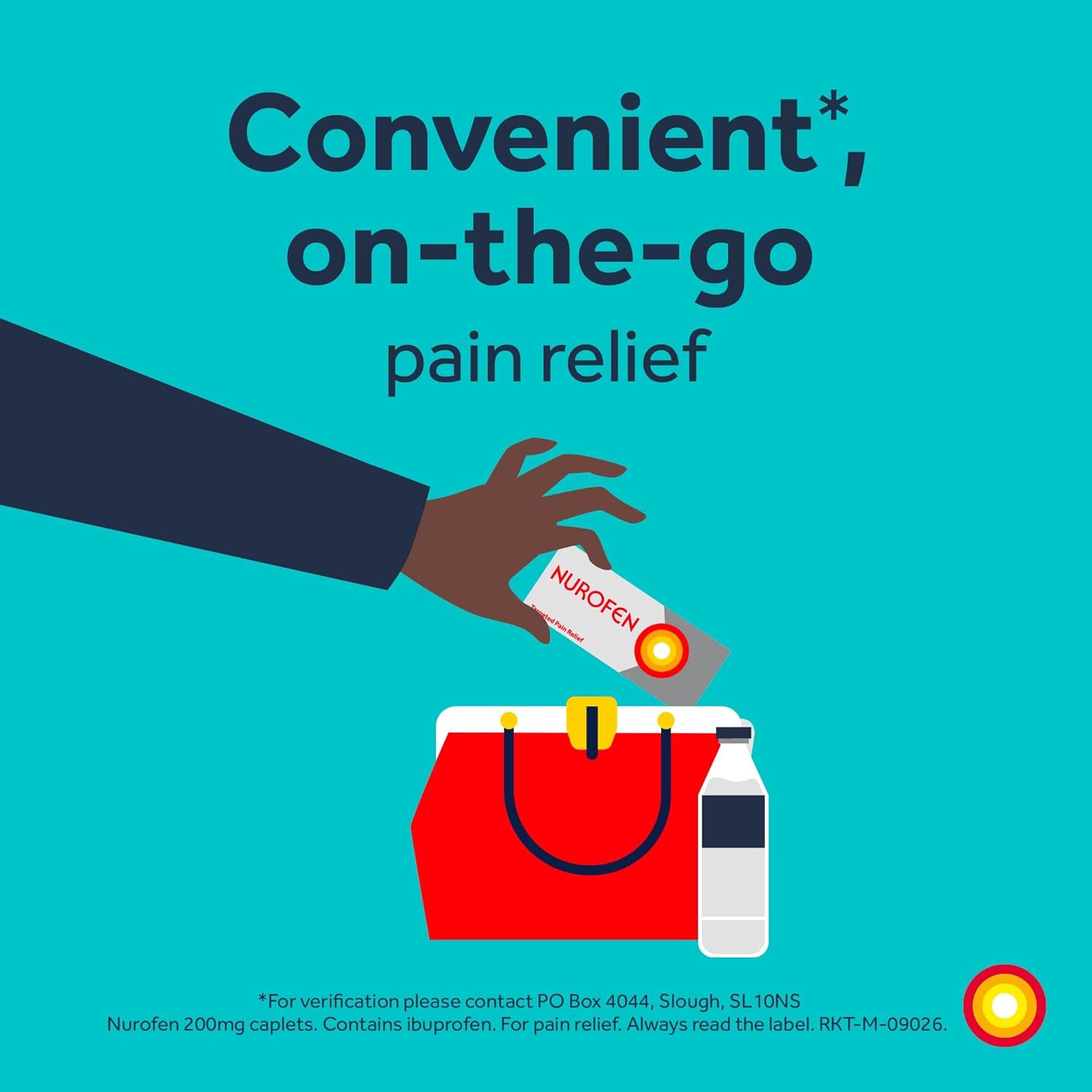 Nurofen Ibuprofen 200Mg Tablets, 16 Caplets For Headache, Migraine, Back Pain, Cold & Flu Relief, 8-Hour Painkiller, Over-The-Counter Medication
