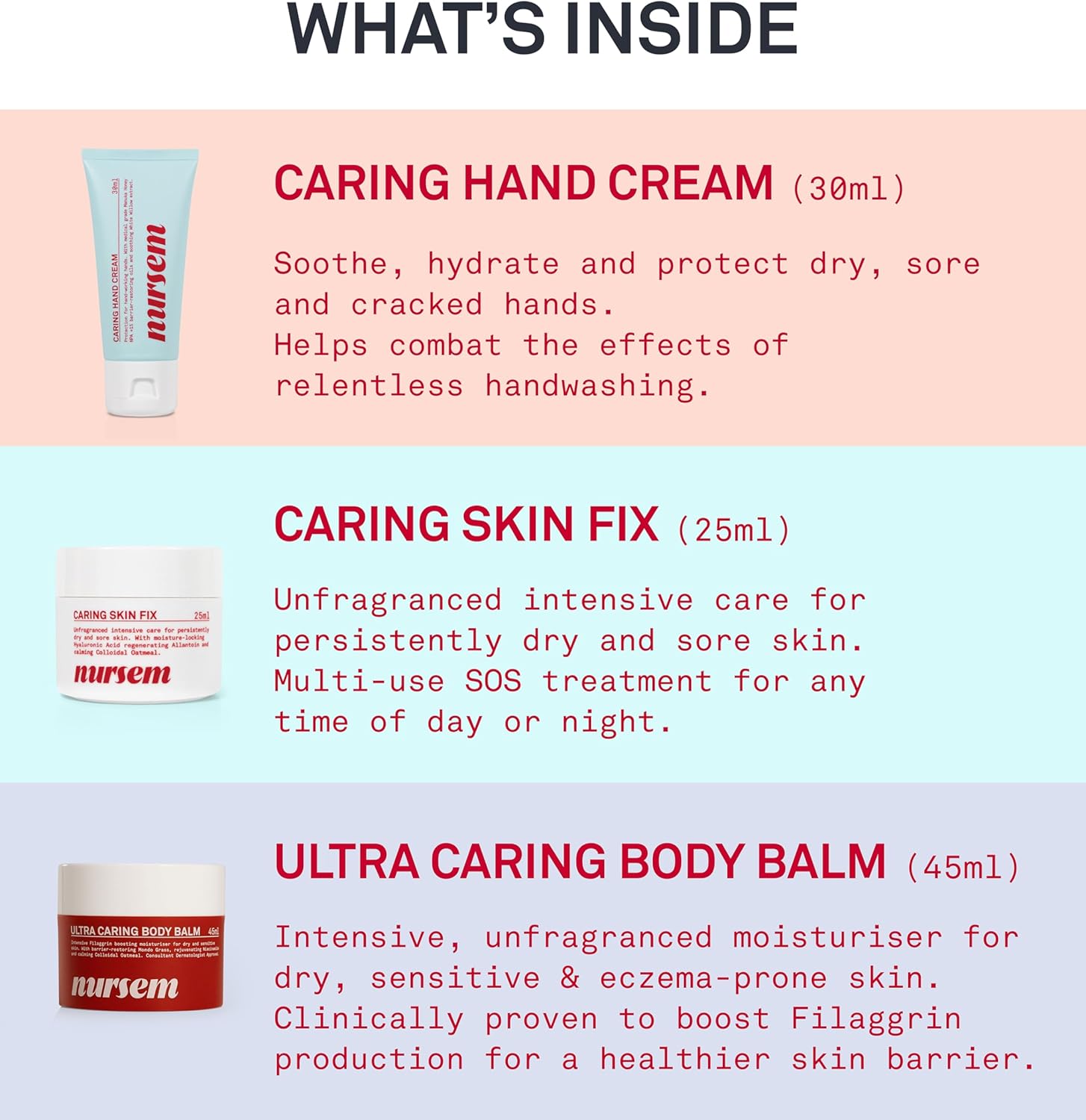 Nursem Skin Care Discovery Set β 3-Piece Hand Cream & Skin Care Kit For Dry, Sensitive Skin | Best Hand Cream For Dry Hands, Cracked Hands & Dermatitis | Moisturizing & Protective Gift