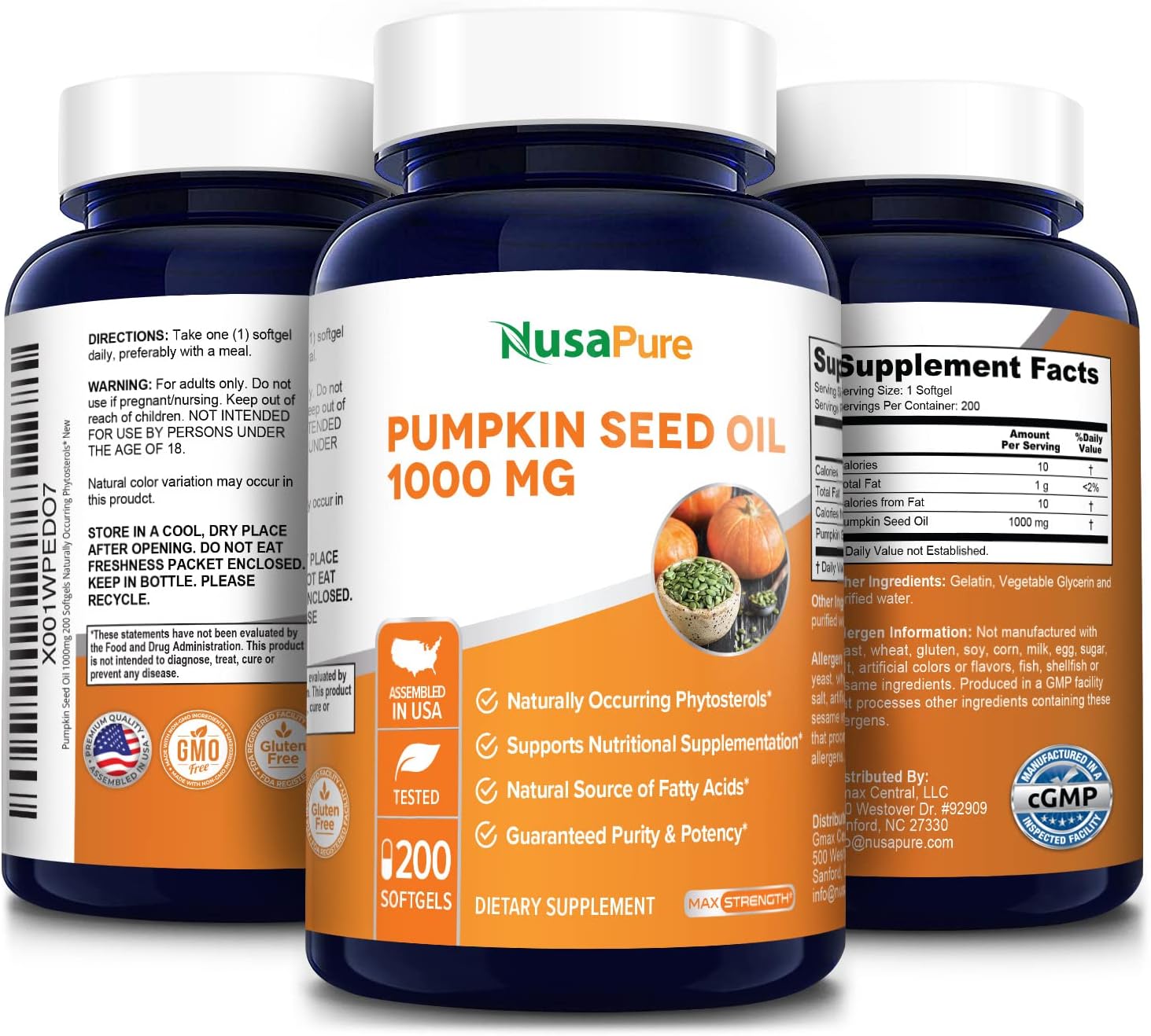 Nusapure Pumpkin Seed Oil 1000Mg 200 Softgel Capsules (Non-Gmo, Gluten Free) Naturally Occurring Phytosterols